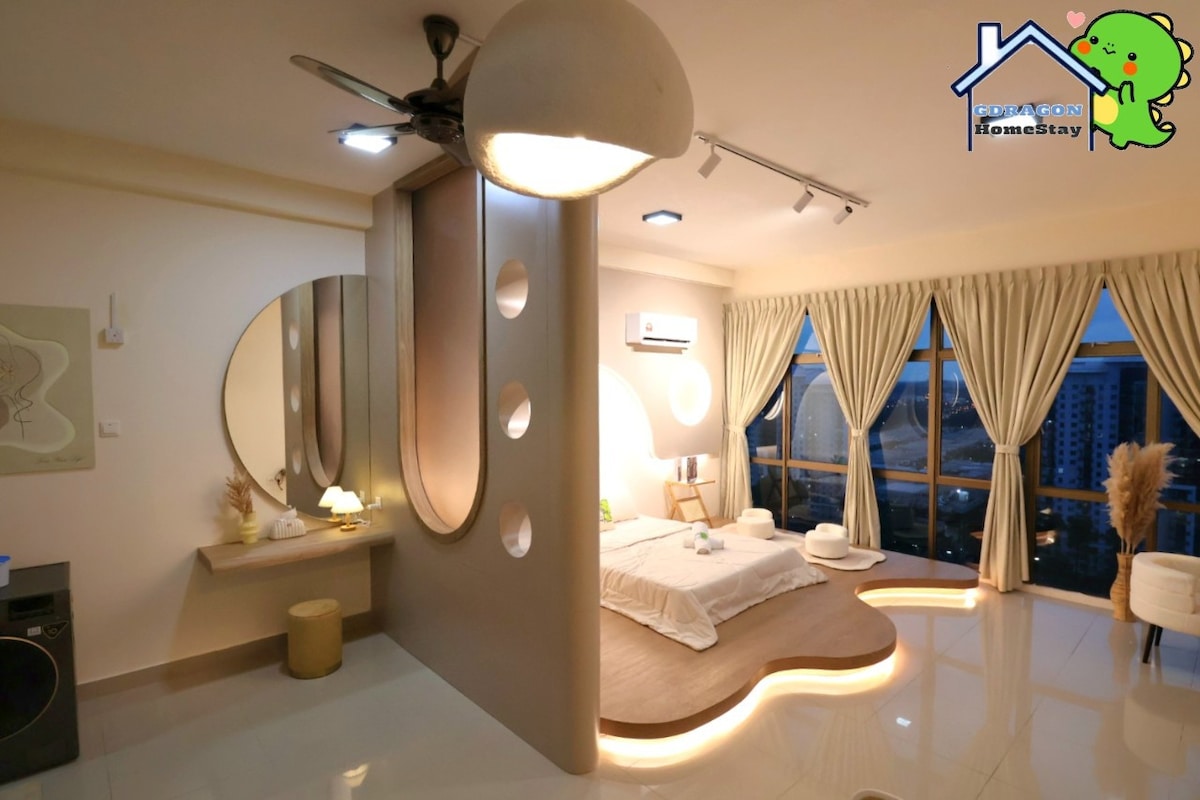 Dobrodošli v Moonstay @ Palazio Popoln družinski oddih! Le 5 minut stran od Toppena, Ikee in Aeona uživajte v nakupovanju, obedovanju in KTV-ju v bližini. Naše mirno prenočišče vključuje prostor za zabavo z Xboxom in Kinectom, bazen v obliki delfinov za vse starosti in popolnoma opremljeno telovadnico. Ne glede na to, ali iščete sprostitev ali zabavo, vam Moonstay @ Palazio ponuja idealen oddih. Rezervirajte svoje bivanje še danes in ustvarite trajne spomine s svojimi najdražjimi.