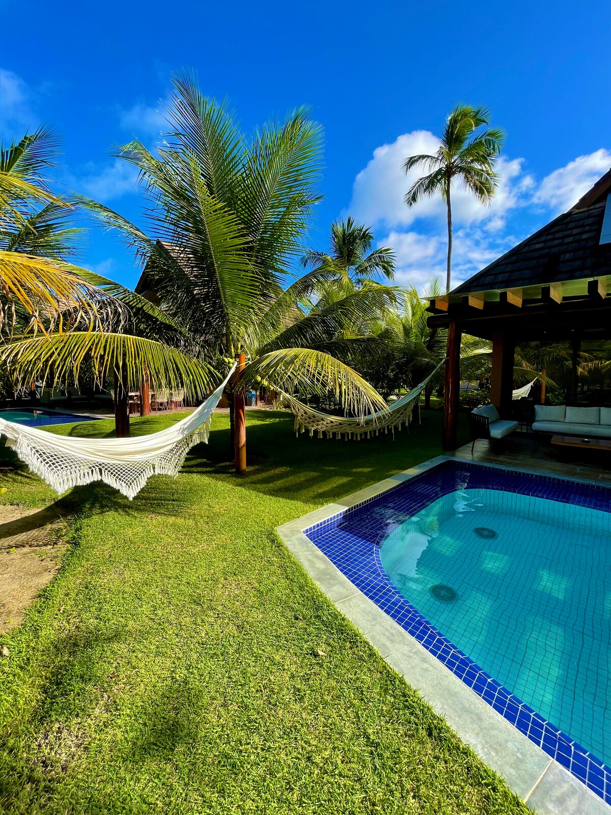 Pre-Sea Bungalow at Eco Resort Carneiros with 4 suites + dependency, in Praia dos Carneiros - PE, in the most popular point in the region. Vse klimatizirane sobe. Bungalov ima ekskluziven Wi-Fi, kabelsko televizijo, žar, vinsko klet, pivovarno, zamrzovalnik, polno kuhinjo, posteljnino in brisače. 100% zasebni bazen v regiji Resorts. Idealno za družine. Gostitelj supergostitelj: Airbnbjev program odličnosti.