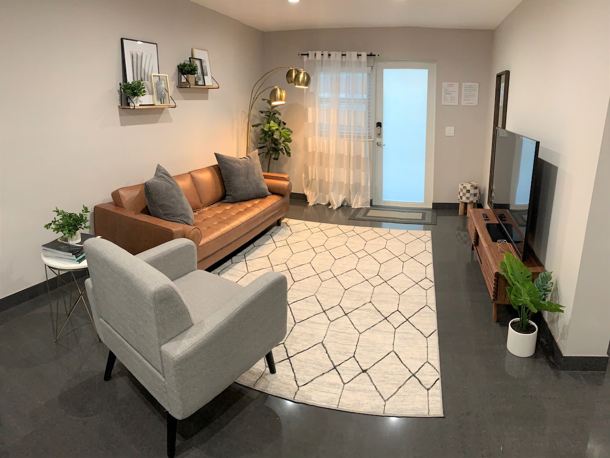 Umaknite se v to sodobno nastanitev, ki jo navdihuje BoHo-ins, in uživajte v videzu in občutku, ki ga prinaša ozemlje. Vsak prostor je premišljeno oblikovan, zato se pripravite, da se boste zaljubili! Uživali boste v 65-palčnem PAMETNEM televizorju, 1 GB internetu in popolnoma opremljeni kuhinji. Najboljša storitev in oprema je vaša, da uživate v svojem supergostitelju s 5 zvezdicami. Sparking Clean in v celoti skladen z vsemi sanitarnimi in varnostnimi protokoli AirBnb. Samo 5 min od plaže in 15-20 min od letališč.