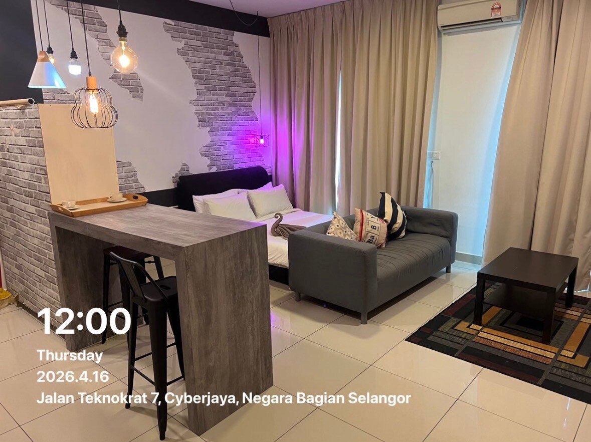 My corner lot 333 sqft studio is on 12th flr with beautiful view of swimming pool and spectacular Cyberjaya skyline. The low density condo is few KMs away from Gem In Mall, Tamarind Square (24-hour BookXcess, Village Grocer), DPULZE Shopping Centre (Jaya Grocer), Shaftsbury Square & MMU. Make yourself at home with all necessary amenities, a 3-seater sofa bed, 500mbps internet, a Smart LED 40" TV with satellite channels, an 11-inches thick mattress & blackout curtains to help you sleep better!