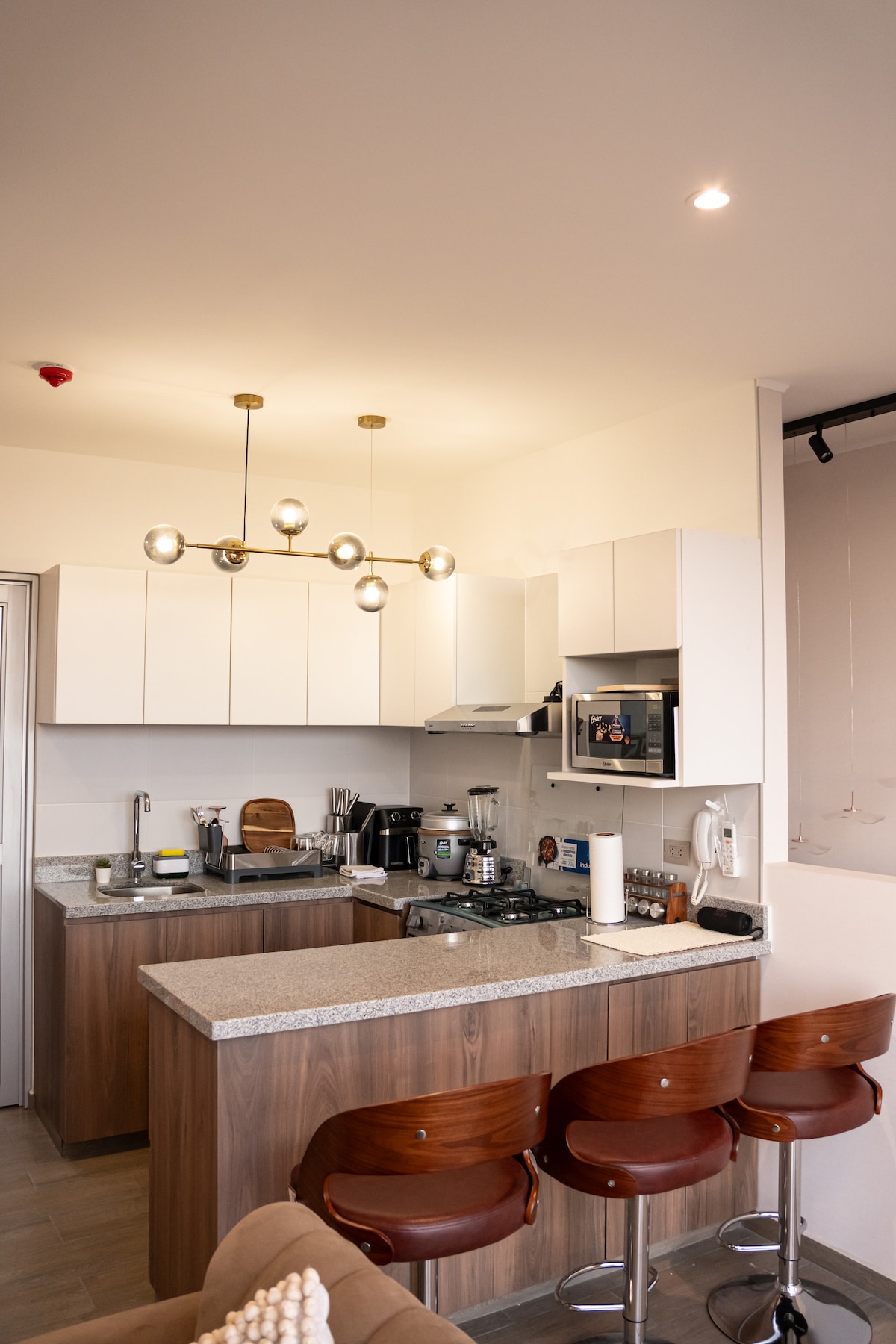Funcional Departamento ideal para parejas o viajeros de negocios en una zona cerrada, tranquila y segura con múltiples centros comerciales y restaurantes cercanos. Disfruta del sunset en la tarde y una buena película en tu streaming favorito.