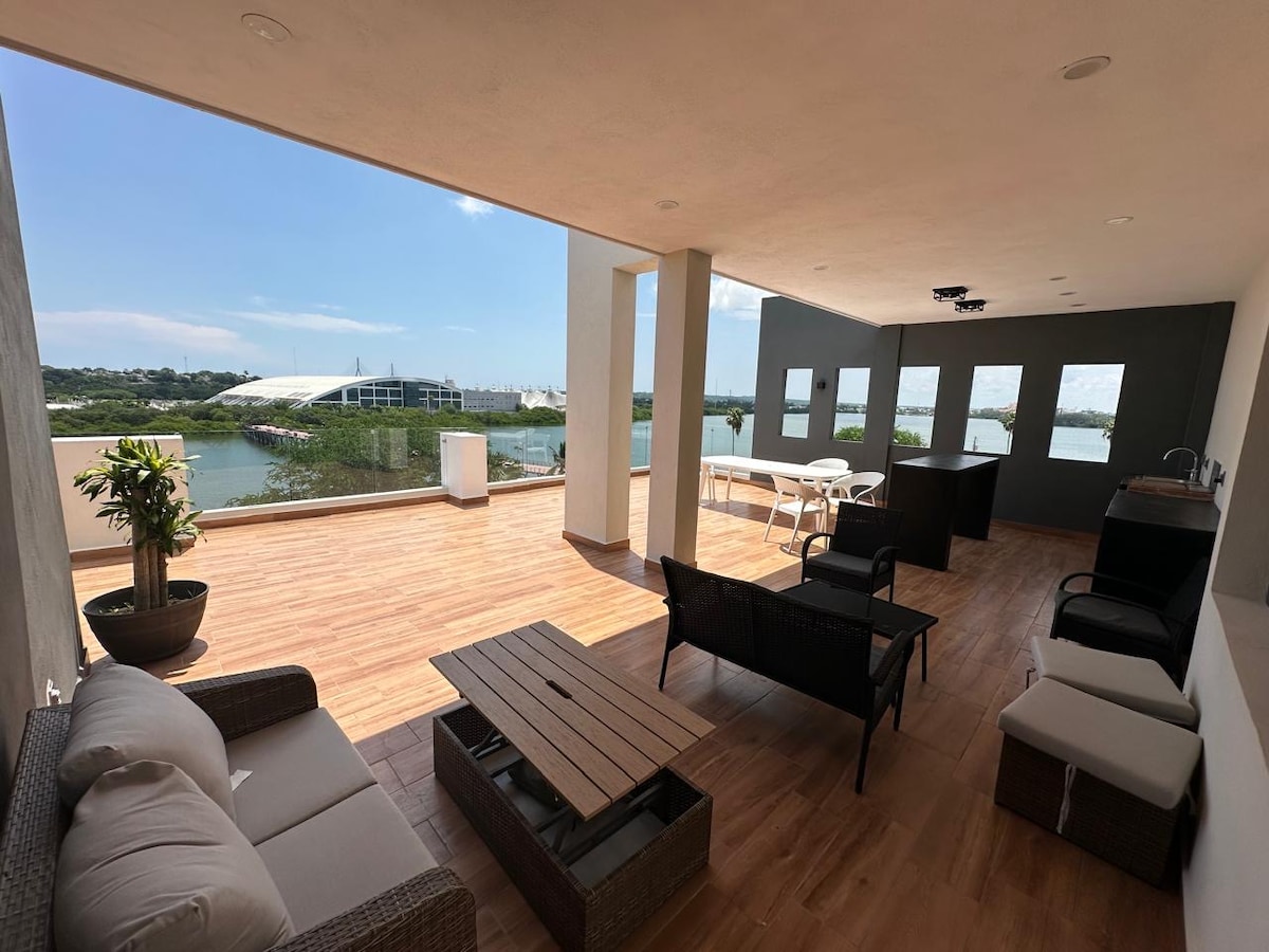 Uživajte in se sprostite v razkošnem bivanju s pogledom na morje v Sredozemlju 2A v zelo ekskluzivnem in zasebnem prostoru z 24-urno varnostjo v frakcionaciji Velamar je 20 minut od letališča Tampico. Stanovanje je popolnoma opremljeno, da bo vaše bivanje nepozabno. *Imamo: - pisalna miza za delo - škatla za ključe in sef. - Najem spalnic -Rental of Toldo 3x3 -Terasa z družinsko rustikalno mizo - Center za pranje perila Opekač kruha - Ni obiskov-