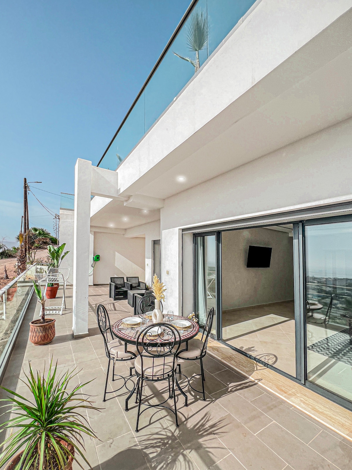 A thoughtfully designed space for folks who appreciate modern-minimalism and slow, intentional living Earthy, uncluttered + natural, this space makes you feel calm while encouraging creativity with big windows and natural light The apartment is located above Hey Yallah — highly rated on Google and the 1st specialty cafe in Tamraght The apt is also in the same building as StudiioHY, where a variety of workshops are offered (yoga, pottery, art..) @hey.yallah | @studiio.hy for event calendar