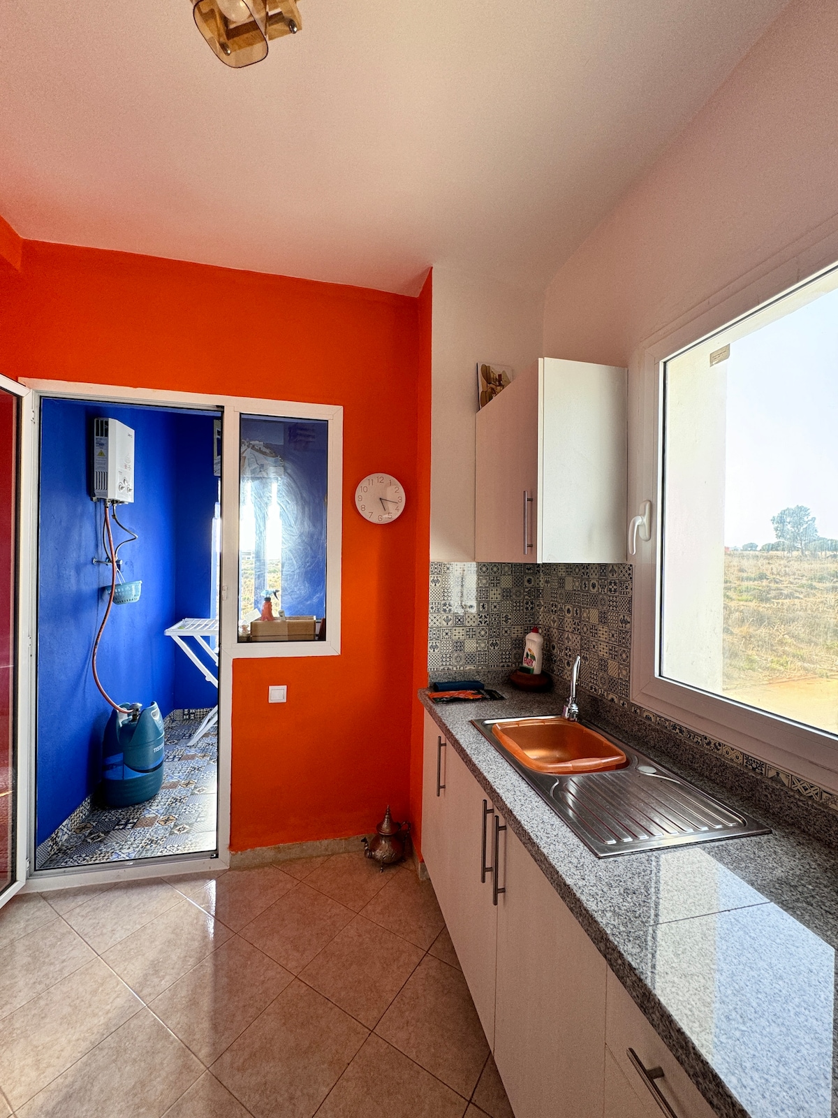 🌿 Očarljivo urejeno stanovanje_ mirno zatočišče v bližini plaže in letališča 🌿 Plaža Sidi Kacem 🏖 5 min, letališče ✈️ 10 min, stadion Grand Stade de Tanger🏟 12 min, park Hercules Parc🎢 10 min, strelišče Club de Tir🕊 10 min, središče mesta 🏙 približno 20 min (s kolesom 🚗). Mirno stanovanje, daleč od množičnega turizma, zelo čisto, dobro opremljeno, udobno in lepo urejeno. Čistoča 🧼🫧in red ustvarjata sproščujoče vzdušje. Bazen se nahaja v sklopu nastanitve.