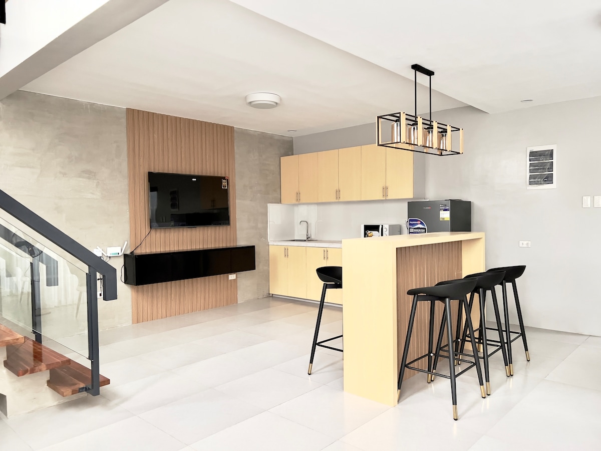 Welcome to Calma Resthouse! A pet-friendly space designed for work and rest.🍃 Enjoy 2 cozy bedrooms, a 4–5ft dip pool, Zion’s massage chair, videoke w/JBL speaker, full kitchen, & outdoor grill. Warm pin lights and track lights are used throughout the space, with no strong center light, creating a soft, cozy, & calm ambient vibe. Essentials provided, just bring yourself! Quiet bedrooms downstairs, fun and bonding upstairs. Safe with private parking & e-fence. Perfect for anyone seeking calm.
