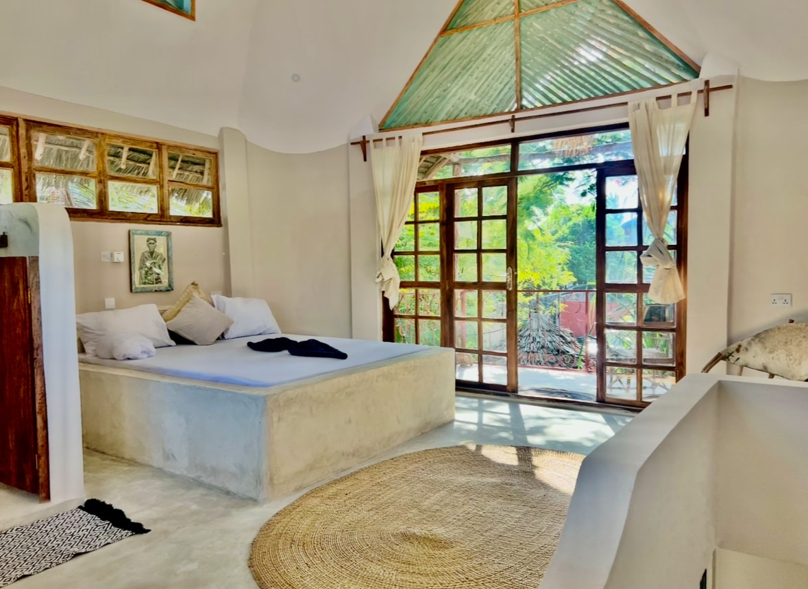 Udobna ekološka koča v obliki črke A, le 10 minut od plaž Nungwi in Kendwa. Idealno za pare ali popotnike, ki iščejo mir, udobje in zasebnost. Vključuje zakonsko posteljo, kuhinjsko nišo, zunanji tuš, Wi-Fi, sončno energijo z rezervnim virom in miren vrt. Ne glede na to, ali se sproščate ob knjigi, delate na daljavo ali raziskujete najboljše plaže na Zanzibarju, ta koča ponuja zasebnost in mir, ki ju potrebujete.