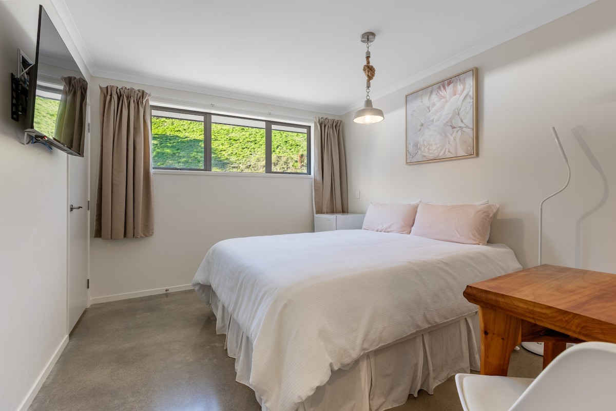 Ta eleganten in edinstven BNB, ki je nastanjen v krilu za goste našega zasebnega prebivališča, postavlja oder za razkošno bivanje. Neverjetna osrednja lokacija je blizu športnih objektov, rečnih poti, gorskih in glavnih žilnih poti. Pridite in se nam pridružite v Puawananga BnB, uživajte v dejavnostih, ki so na voljo na tem območju, ali pa se sprostite in uživajte v vzdušju namestitve. Kontinentalni zajtrk je na voljo v čajni kuhinji s čajem/kavo, ki je na voljo ves čas.