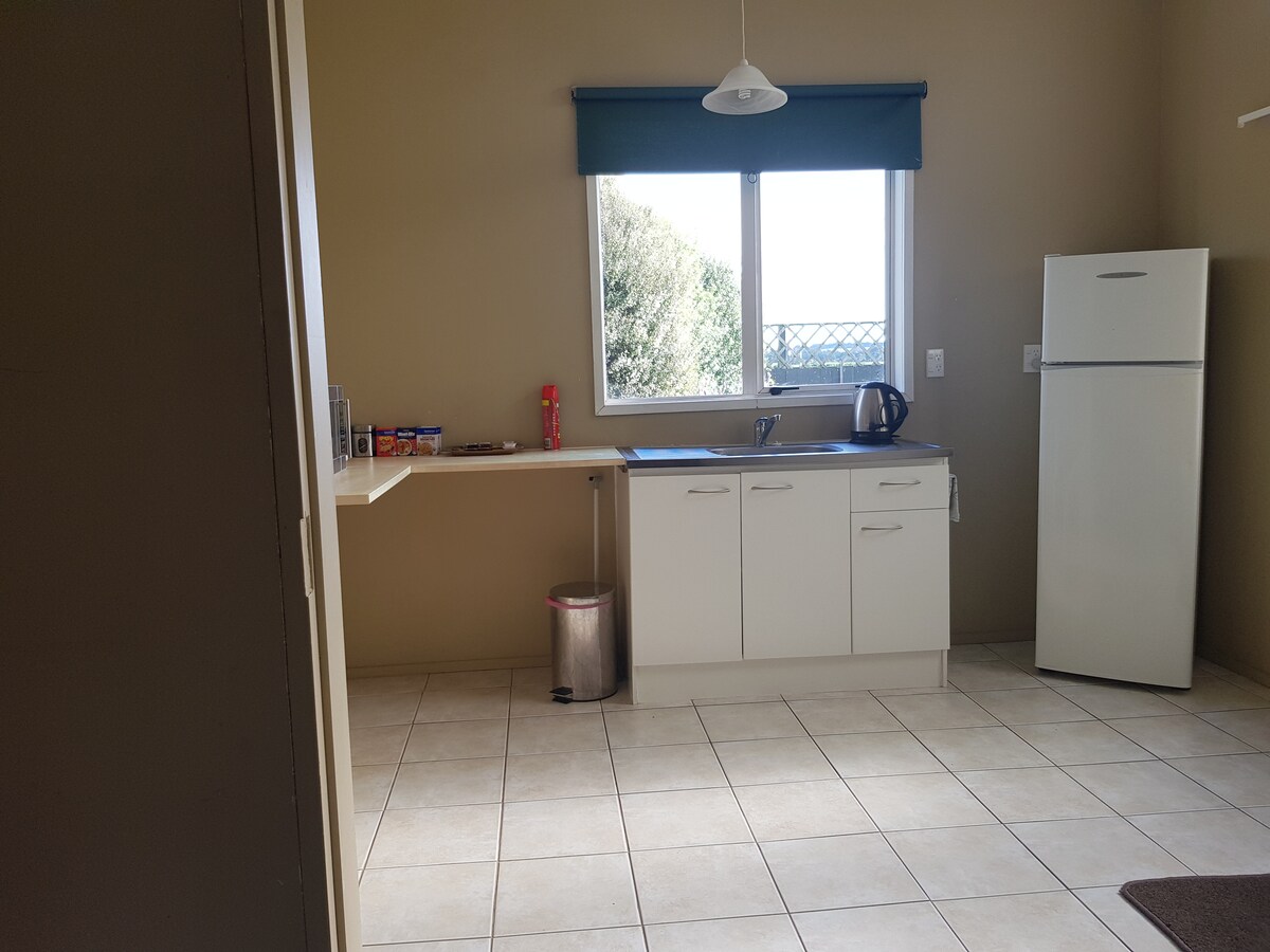 * No cleaning fees :) * Relax and unwind on our small peaceful farm guest sleep out. One bedroom one bathroom sleep out with kitchenette. One king size bed and a pull out sofa bed. Would suggest this for children only for the limited room. Can provide a travel cot for infants if organised in advance. 10 mins drive away from Kai Iwi beach and a 20-25mins drive to Whanganui. We are situated on the main highway but far enough to not hear traffic. Great location for kids to run around.