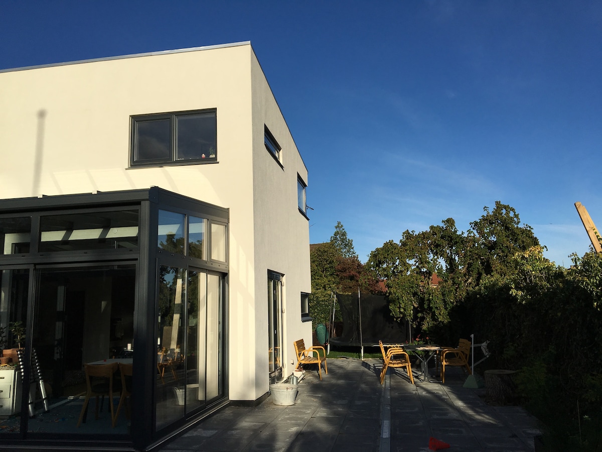 Relax at our peaceful family home with a spacious garden during your Copenhagen stay. The house is located in a quiet neighbourhood very close to the center. It is our private home, and we love sharing it with travellers to give a local experience. We are working in the creative field and we love using airbnb when travelling ourselves. We hope you will enjoy your stay and we are looking forward to welcoming you.