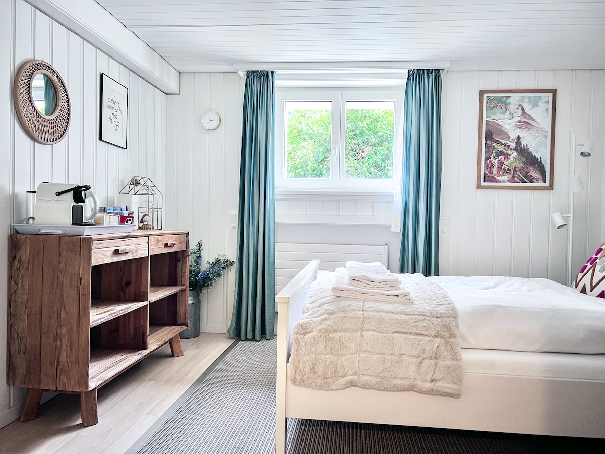 WICHTIG: Die Kurtaxe von CHF 4.– pro Person und Nacht ist nicht im Preis inbegriffen und muss beim Check-Out Bar auf dem Tisch hinterlassen werden. Willkommen im gemütlichen 35 m² Studio im 1st Stock – nur 700 m vom Zentrum und dem Bahnhof entfernt. Der Hauseingang ist über ca. 20 Treppen-stufen erreichbar. Ausstattung: • Offenes 1-Zimmer-Studio mit Queensize-Bett (160 cm) & Schlafsofa (140 cm) • Voll ausgestattete Küche: Backofen, Nespresso-Maschine, Heiss Wasserspender, kein TV, Balkon
