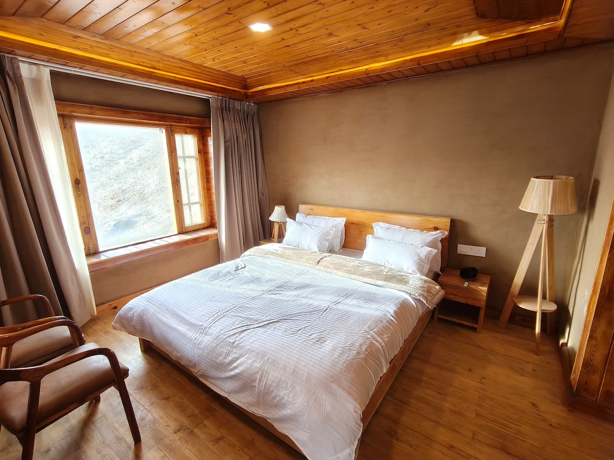Naš »dom na robu« slikovite vasice Pangmo, Spiti ponuja osupljiv razgled na dolino z reko Spiti, ki teče tik pod njim, prijetno lokalno hrano in priložnost za raziskovanje skromnega spitianskega načina življenja. Smo edino prenočišče v celotni vasi. 📍 Lokacija: 26 km od Kaze. 🍽️ Obedovanje: lokalni obroki z zelenjavo in brez zelenjave, ki jih postrežemo v naši tradicionalni jedilnici. Ne zamudite razgledov na Mlečno cesto v nočnih nočeh in srebrne ledene gore na polnem mesecu.