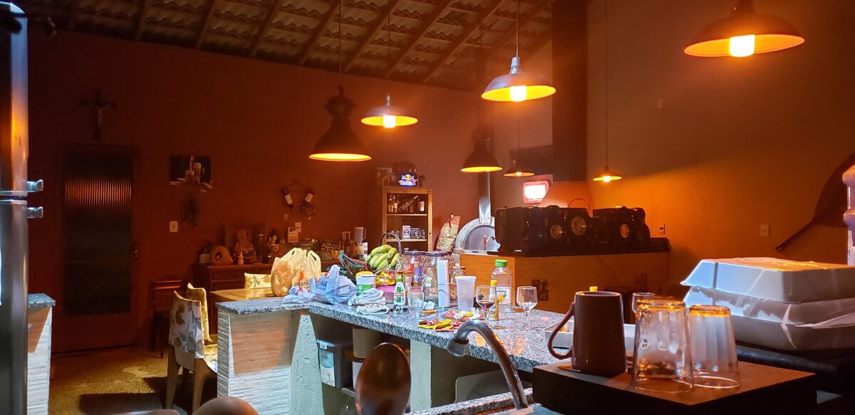 Venha conhecer nosso Recanto, e aproveitar dias de lazer, paz e tranquilidade com sua família e amigos. ar condicionado em todos quartos quadra de areia ( novidade) Piscina Roupas de cama Churrasqueira Fogão à lenha Forno de pizza Espaço para sua mesa de festa Redário Futon para descanso Balanço para fotos casa completa com todos os utensílios Lareira Wi fi fibra ótica Som ambiente 3 TVs tela grande Fogueira Karaokê Pebolim Ping pong Video game X box bilhar Playground