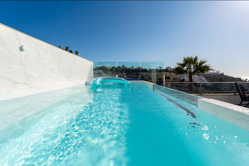 Čudovita vila v Portoriku na otoku Gran Canaria z zasebnim bazenom in panoramskim pogledom na morje. Idealno za družine, pare ali skupine prijateljev, ponuja tri spalnice – vsaka s svojo teraso za uživanje v sončnem vzhodu ali zahodu. Dve spalnici imata kopalnico, tretja pa ima zasebno kopalnico le nekaj korakov stran. Odprta kuhinja in dnevni prostor se odpirata neposredno na zunanje prostore, vključno z žarom, jedilno teraso in udobnim salonom za sprostitev.