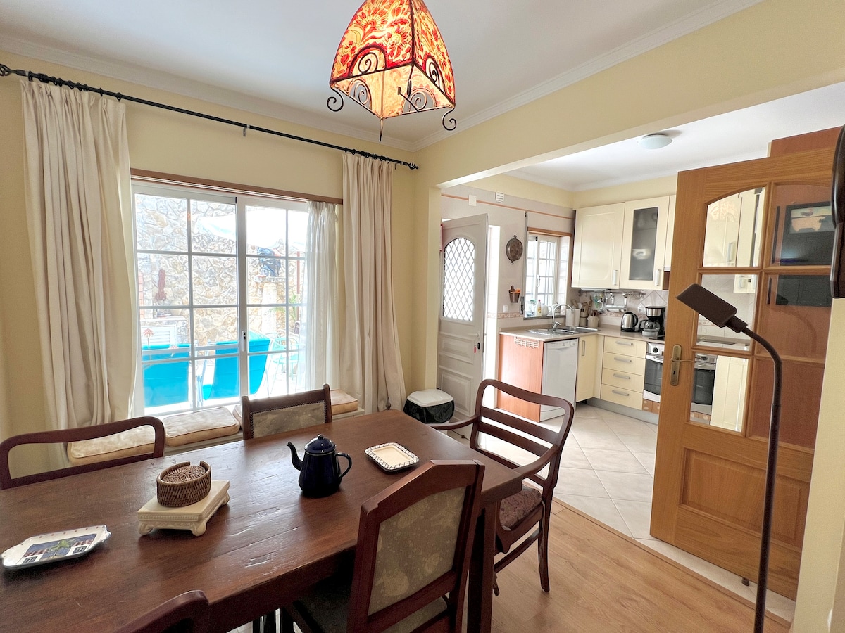 Pritlično stanovanje v osrčju zgodovinskega središča Tavire s tremi spalnicami, dvema kopalnicama in bazenom - kot nalašč za nekajdnevno sprostitev z družino ali skupino prijateljev. Blizu (peš) vsega, zaradi česar je to čudovito mesto tako posebno: grad, Palácio da Galeria, rimski most čez reko Gilão, trgovine, neštete kavarne, restavracije in pekarne. Ta zgodovinska hiša je sodobna, udobna in udobna v notranjosti. In zasebni bazen je velik plus.