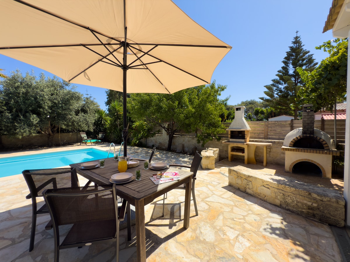 Uživajte v prijetnem in mirnem oddihu s prijatelji in/ali družino v tej novi mirni in zasebni vili. Nahaja se sredi narave, obkrožena z oljčnimi drevesi, na razdalji 650 m od plaže. Ta udobna opremljena vila ima 3 spalnice, popolnoma opremljeno kuhinjo, 1 kopalnico in žar na terasi poleg bazena na prostem. Prednostna lokacija omogoča enostaven dostop do najbolj znanih osupljivih plaž na zahodnem območju.