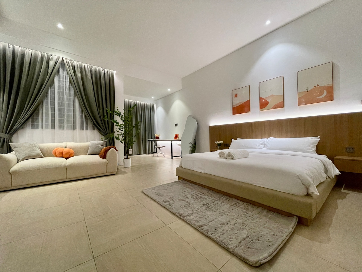 Minimalistično prenočišče le nekaj minut stran OD mesta IN letališča. Uživajte v 24-urni varnosti, zasebnem parkirišču, Wi-Fi-ju in kuhinji za lahko kuhanje. V bližini kina 10Star, 24-urne restavracije, igrišča in tekaške steze, ki so kot nalašč za družine ali popotnike, ki iščejo udobje, slog in priročnost.