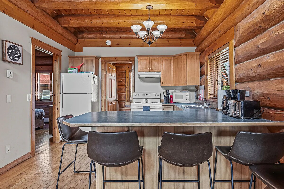 This bright one bedroom cabin holds a rustic charm set in a forested area, located just out of the town of Golden, BC. As the smallest of all the Wild Wood Cabins, the layout of Deer Crossing is cozy and compact, perfect for two guests. There is an open concept bedroom upstairs with a queen sized bed and washroom. Downstairs has the kitchen and living area sharing one open space. A pull-out-couch is included for an extra guest. Two covered decks also allow for more enjoyable times outdoors.