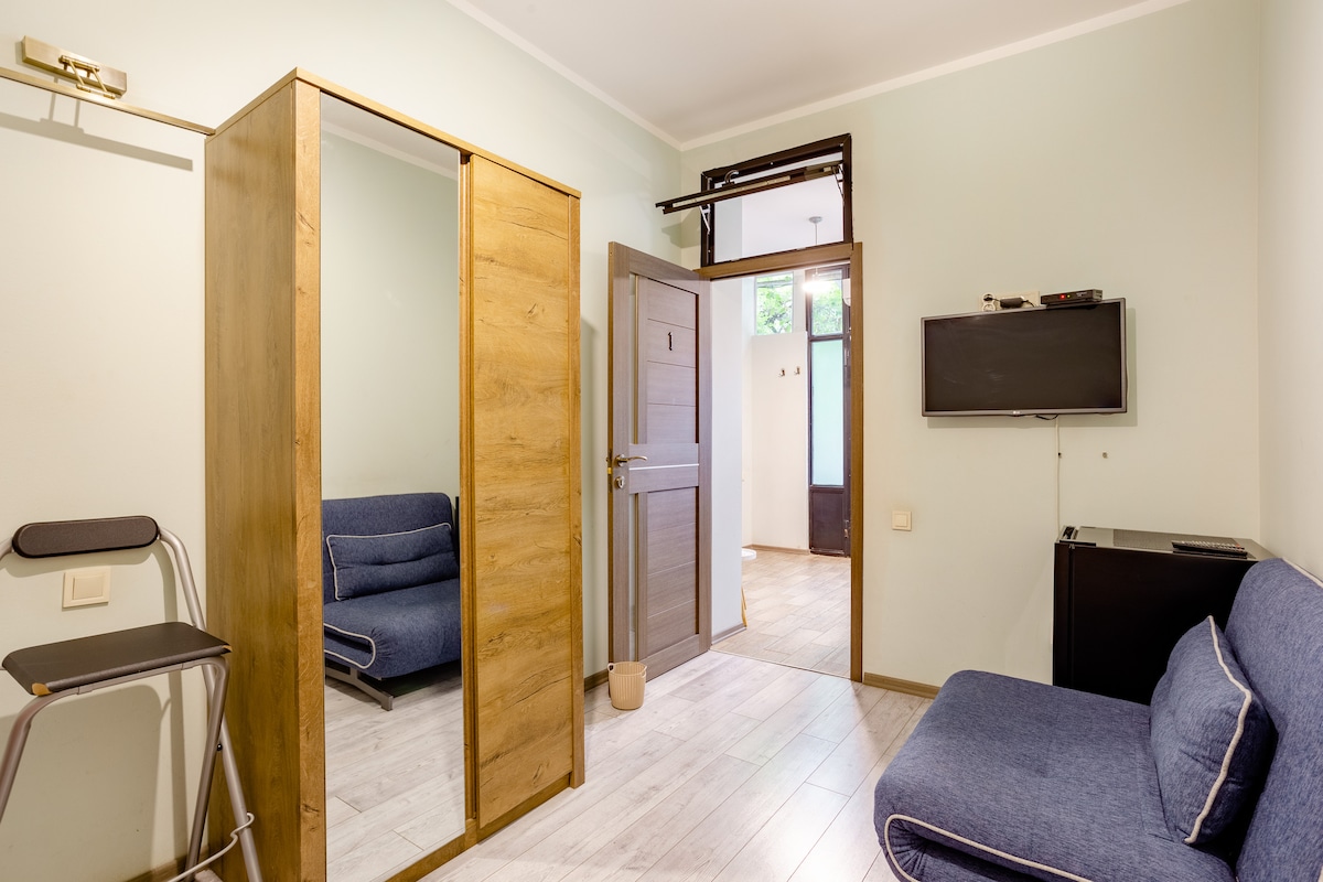 Na novo prenovljeno stanovanje v središču starega Tbilisija. Ena spalnica(2 enojni postelji), ena kuhinja(popolnoma opremljena), ena kopalnica, ročno izdelana in edinstvena dekoracija v stanovanju. Vse glavne znamenitosti so oddaljene peš, prevoz pa morda ni potreben. Postaja podzemne železnice Liberty Square in nakupovalno središče Galeria, avtobusne postaje so oddaljene 5 minut hoje. Osrednja lokacija, vendar mirno in spokojno dvorišče. Hiter in stabilen Wi-Fi, zagotovljen samostojni vstop/izstop (omarica s kodo).