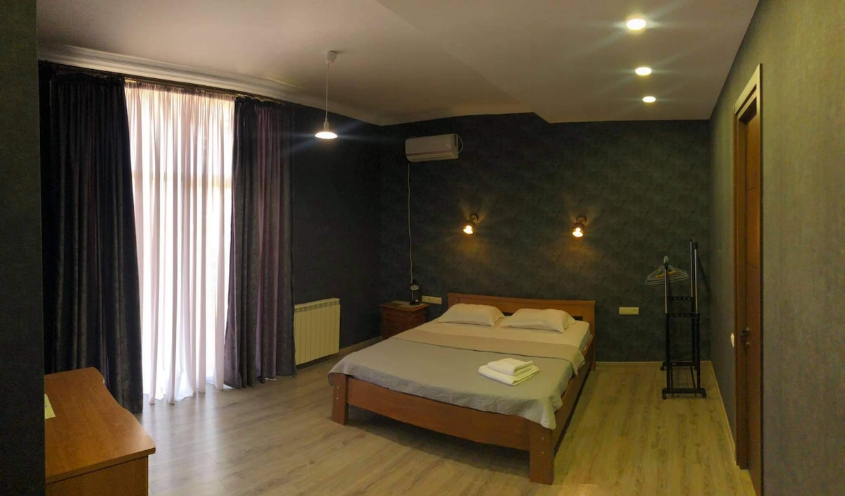 Welcome to our charming family hotel With eight cozy rooms, we can accommodate up to 20 guests simultaneously. Our hotel features a reception area and a fully equipped kitchen where you can savor delicious local specialties paired with our homemade wine. For a breathtaking experience, rooftop bar and enjoy panoramic views. Immerse yourself in our warm hospitality and create unforgettable memories at our delightful Georgian hotel.located 5.2 km from city center