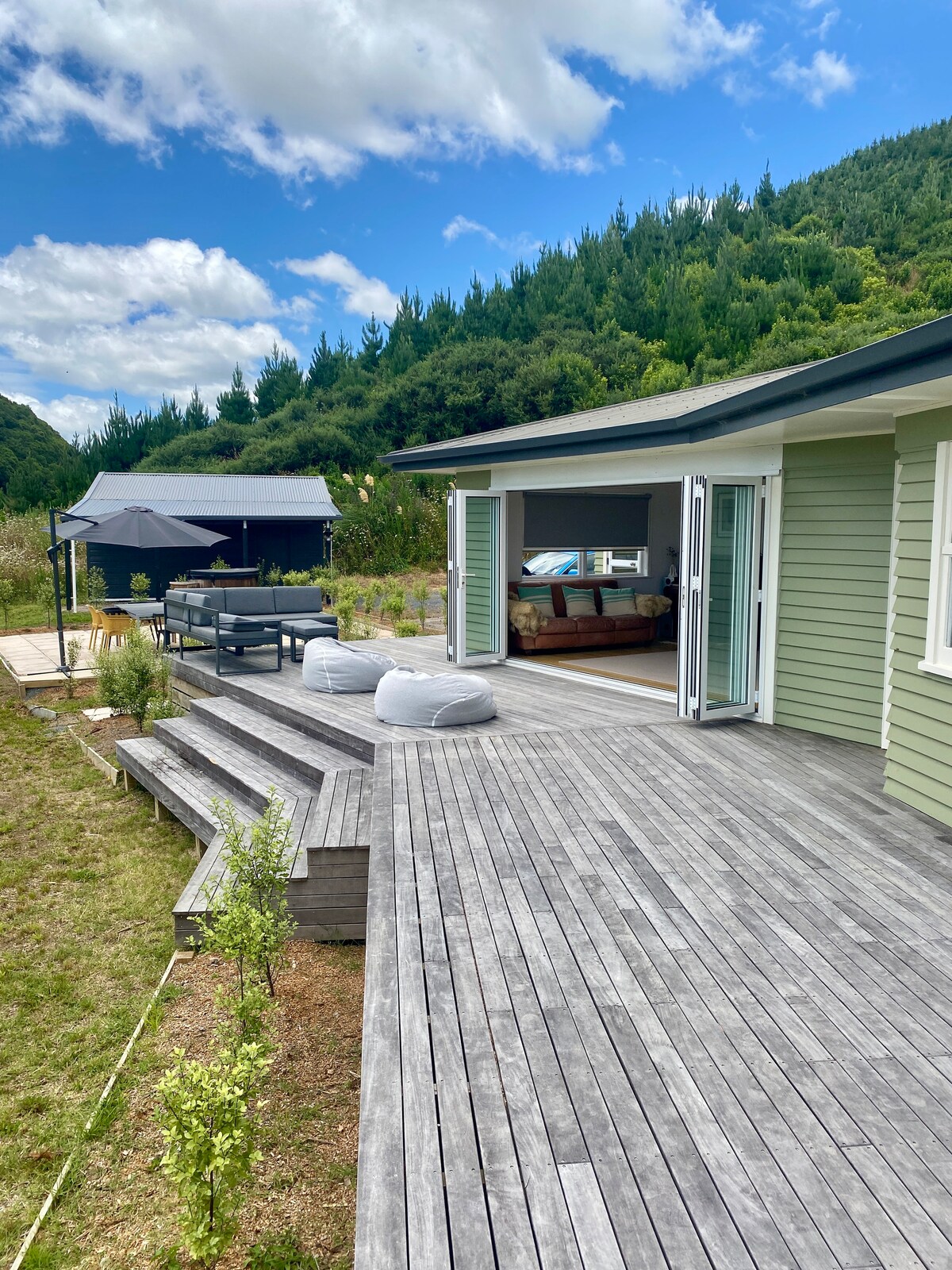 Come and treat yourself to a couple of nights away at the unique Blackwood Cabin. Positioned overlooking a beautiful blackwood bush and lovely walnut tree grove. Put your feet up and relax in the stunning outdoor stone bath with a glass of wine and just enjoy the view. Complete with everything you need for the perfect luxury getaway - stylish, funky and a complete treat. And less than 5 minutes to Raglan township.