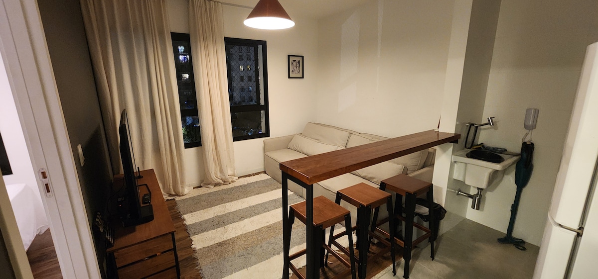Apê novo e tech, perto Paulista, 7 min metrô c/ ar