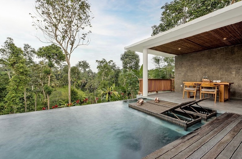 Soba z razgledom na džunglo, neskončnim bazenom in savno