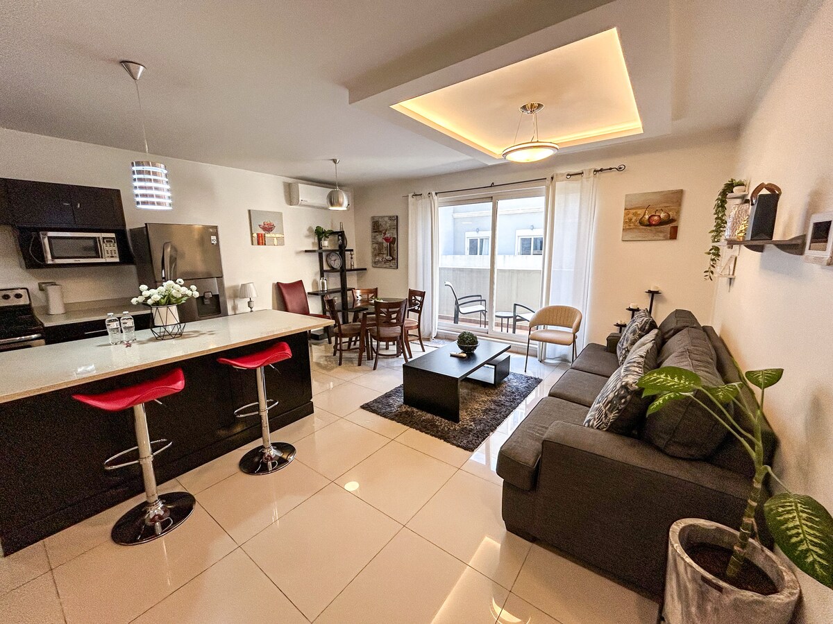 Uživajte v bivanju v prenočišču EcoDistrito 307, na obroču Periférico in pred EcoPlazo (trgovine, restavracije in supermarket). Sodobno stanovanje s klimatsko napravo, omrežjem Wi-Fi, Netflix, Amazon Prime in HBO Max, zasebnim parkiriščem in pogledom na baziliko Suyapa. Primerno za 2 odrasla in 1 otroka. Telovadnica 🏋️, igrišče za pickleball🏓, kioskos, prostor za žar 🔥 (doplačilo), sejna soba in pralnica. 10 📍 minut od Multiplaze, 25 minut od Santa Lucíe in 35 minut od Valle de Ángeles. Udobje, lokacija in slog!