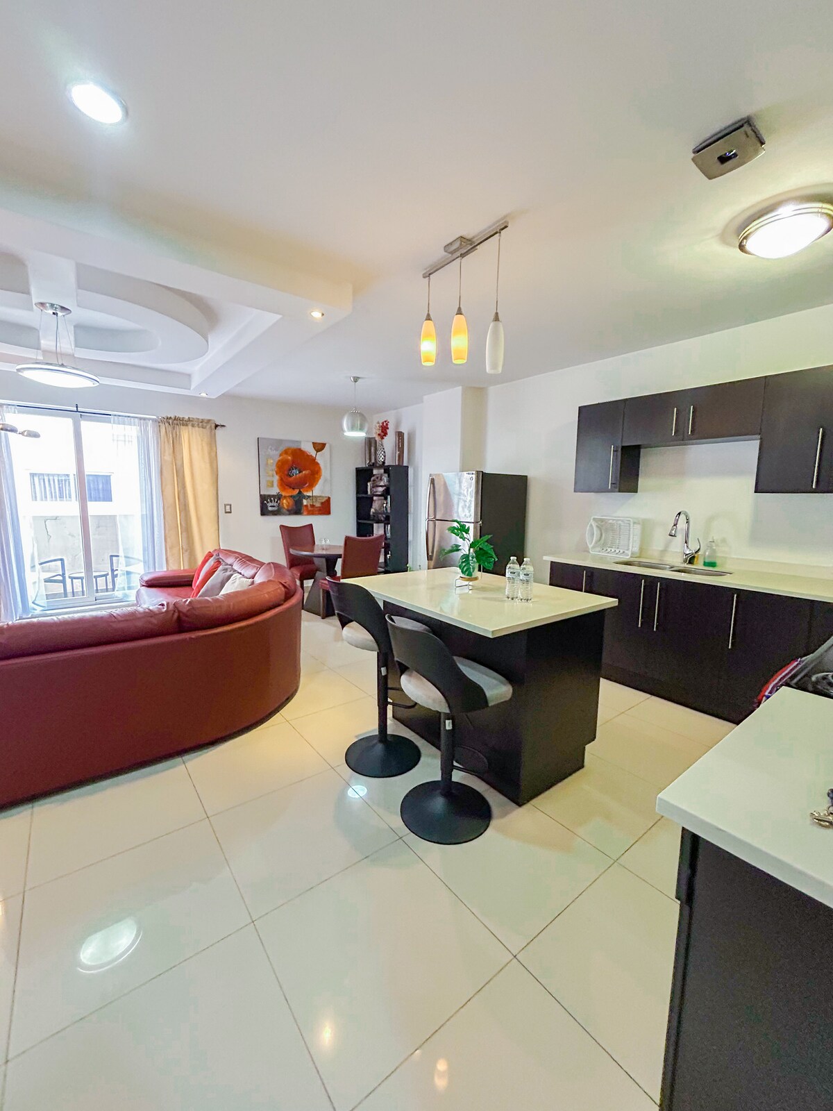 📍 Suite moderna en Paseo Los Próceres, a solo 3 min caminando de la nueva Embajada Americana y junto al Hotel Hyatt. 🛒 Todo a pie: supermercado, centro comercial, restaurantes, bares, cafés, cine, bancos, salón de belleza y barbería. 🔐 Seguridad 24/7. 🛋 Finamente amueblada, cómoda y céntrica, con todas las facilidades para una estadía segura y práctica.