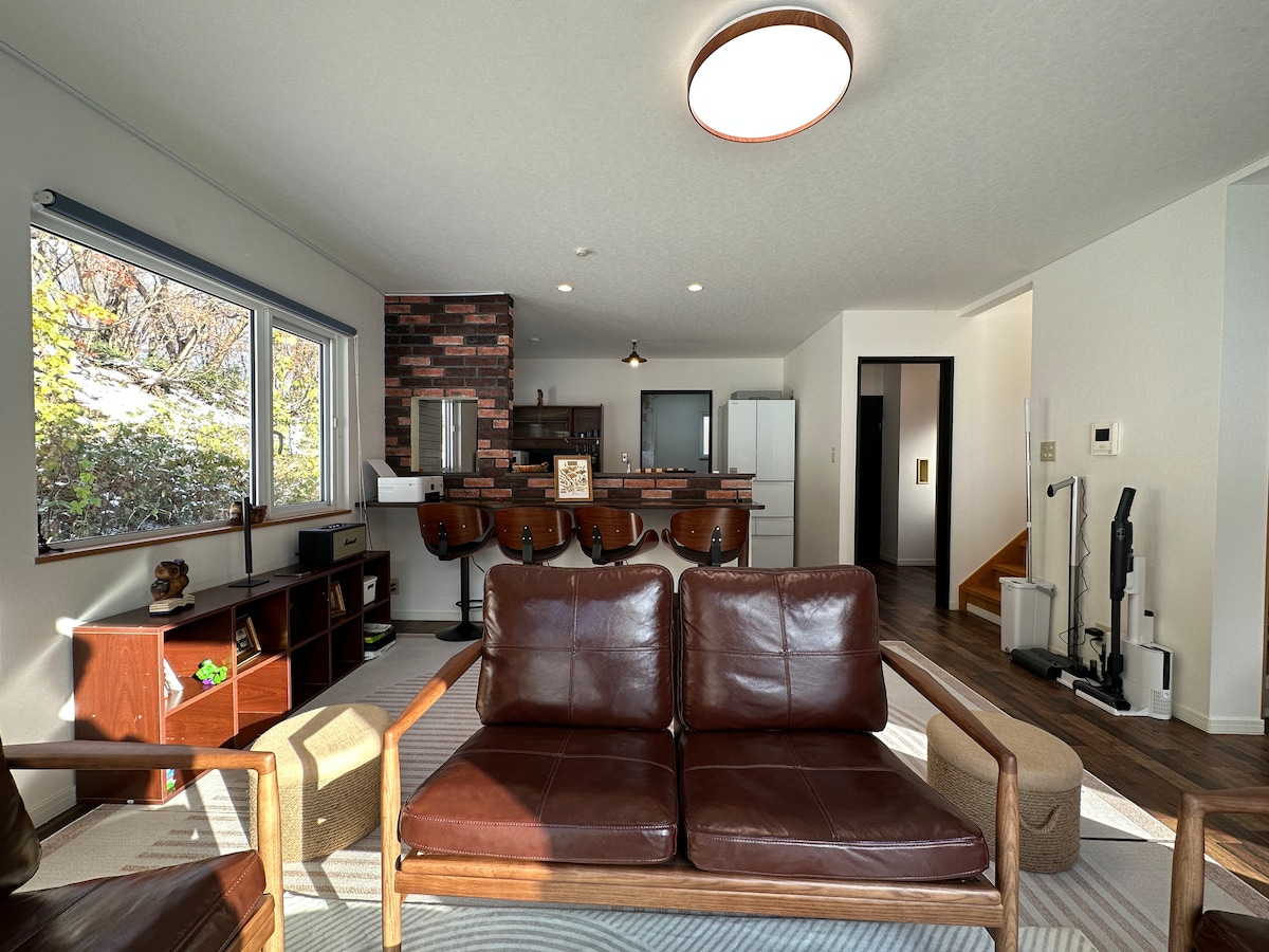 Stay in our luxury retreat near Sapporo, where nature and living harmonize. Built with Hokkaido wood and stone, the villa offers 3 bedrooms, 2 bathrooms, and 3 toilets, with stunning forest views. Relax by the wood-burning stove or on the terrace, where the forest is beautifully lit at night. Enjoy complimentary Hokkaido craft beer, sake, and wine. Ideally located, the villa is 20 minutes from Otaru, 35 minutes from Sapporo, and 103 minutes from Niseko, perfect for exploring Hokkaido.