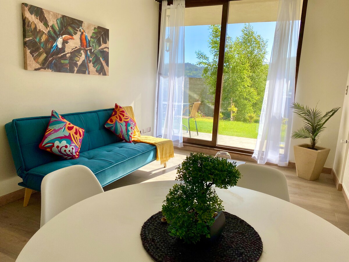 Cómodo y acogedor departamento con vista directa al Santuario de la naturaleza del Río Cruces, ubicado en un edificio nuevo con sólo 2 años de antigüedad. Cuenta con living, cocina, dormitorio y baño completamente equipados, con grandes ventanales que dan hacia una amplia terraza con mesa y parrilla eléctrica para maravillarse con los hermosos paisajes que regala la perla del sur. Ubicado en un punto estratégico, a solo 1 km de parques hermosos, humedales o bares en isla teja.