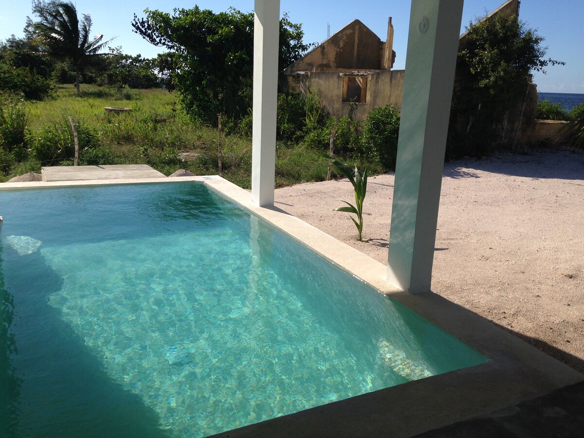 Minimalistični slog hiša na obali plaže, ima tri spalnice opremljene z AA, dve kopalnici s toplo in mrzlo vodo; kuhinja, klimatizirane sobe in bazen s pogledom na morje. Lahko uživate v miru tega čudovitega pristanišča Dzilam de Bravo. Hiša se nahaja le 500 metrov od pristanišča. V kraju boste našli vse storitve, ribolov, vožnja s čolni, okusno hrano v različnih restavracijah, trgovinah, lekarnah, cerkvah, itd.