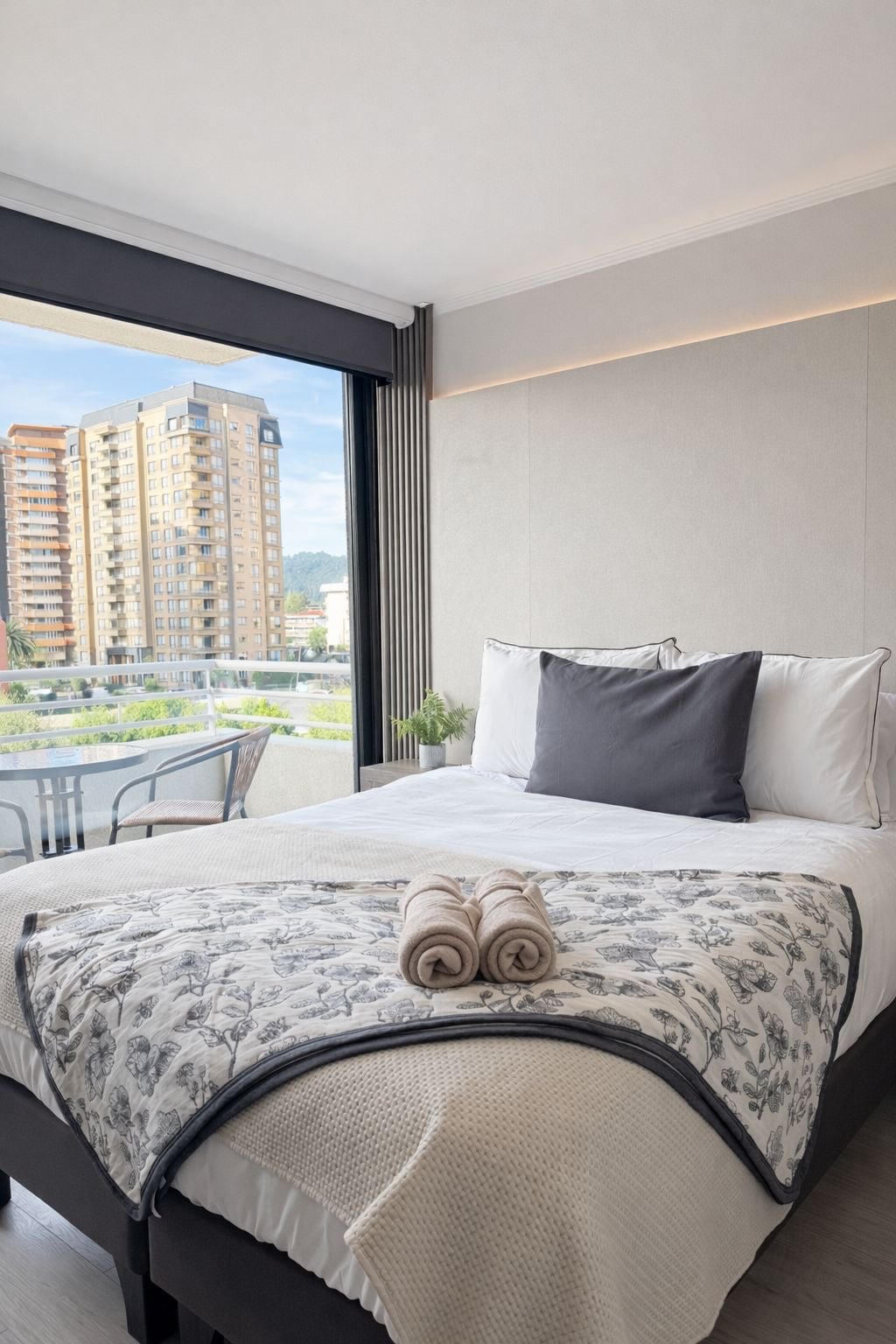 Disfruta tu estadía en un moderno departamento tipo estudio en pleno Temuco. A pasos de Av. Alemania, rodeado de cafés, bares, mall Portal, clínicas, universidades y Casino Dreams. Diseñado exclusivamente para dos personas, cuenta con cocina equipada, WiFi ideal para Home Office, baño privado y balcón. Estacionamiento frente a conserjería, sujeto a disponibilidad. Acceso controlado 24/7, cercanía, confort y estilo. ¡Te esperamos!