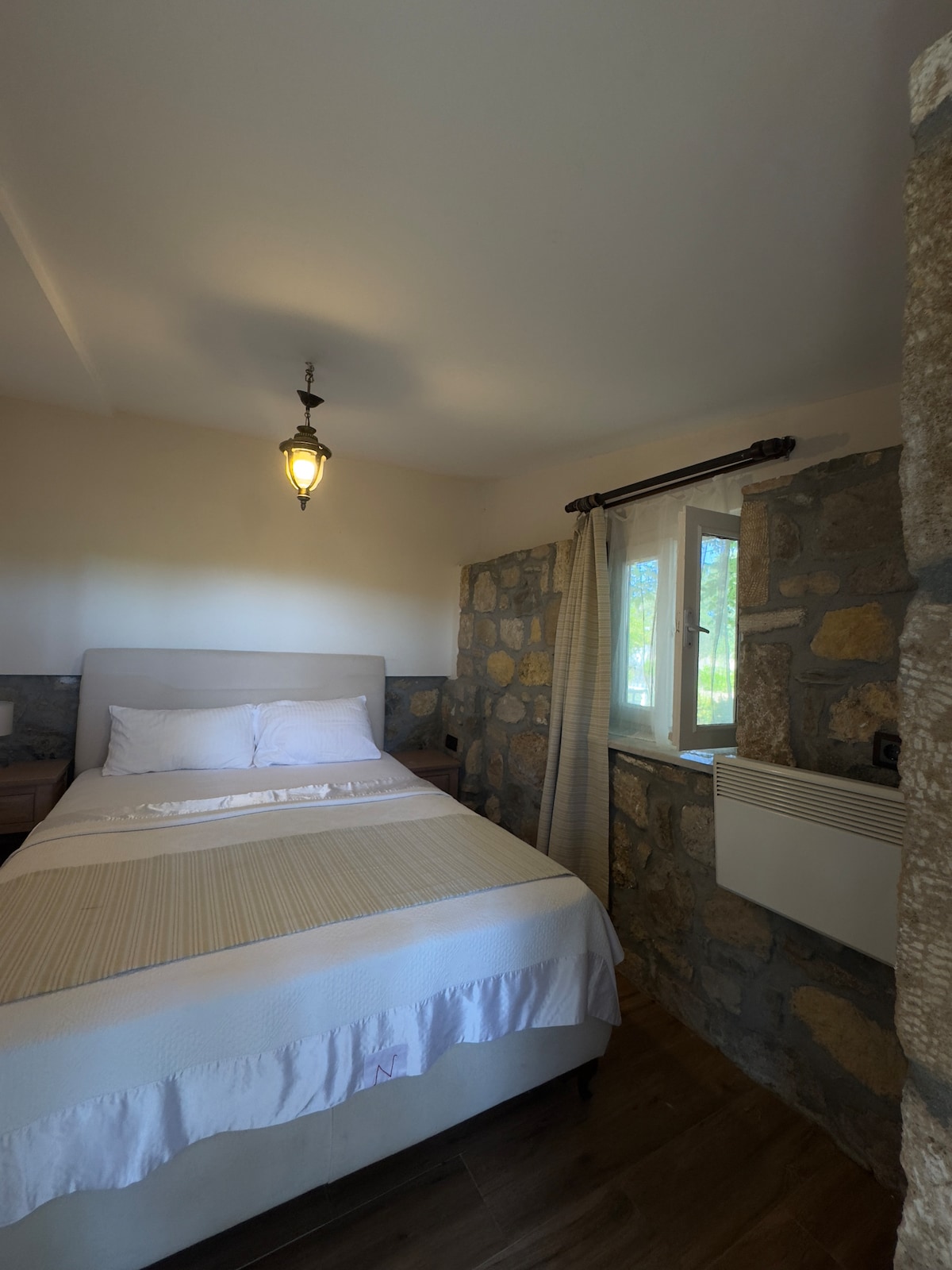 Soba Hürrem s pogledom na vrt je prostorna soba z zasebno kopalnico., V tej sobi lahko dodate 1 zakonsko posteljo in 1 enojno posteljo ter 1 osnovno ali dodatno ležišče, zato lahko sprejmete 4 osebe. Ker se nahaja v grški hiši, vam Hürrem, ki je poleti kul, obljublja oazo v vaši odsotnosti.