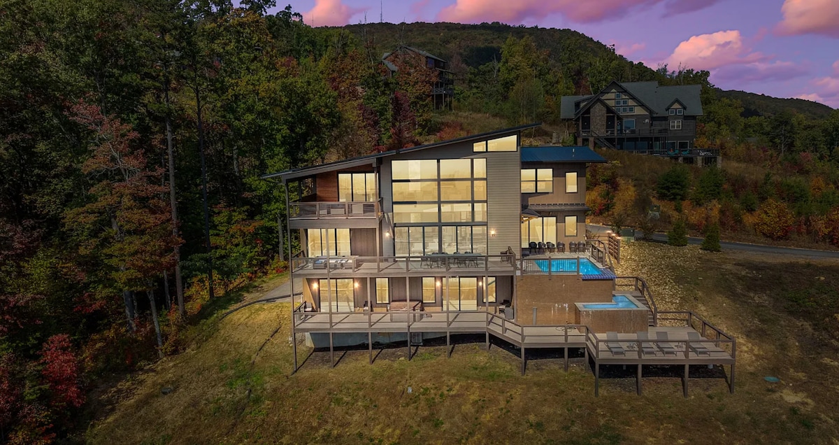 Escape to Three Pines Lodge, a stunning modern retreat bathed in natural light and surrounded by breathtaking mountain views. Enjoy the scenery through expansive windows or from the outdoor entertainment spaces. Designed for all ages, this luxury vacation home offers top-notch amenities, including a Hot Tub, Arcade Games, Peloton Bike, and more! Experience unparalleled comfort and create unforgettable memories with your family. Book your Smoky Mountain getaway at Three Pines Lodge today!