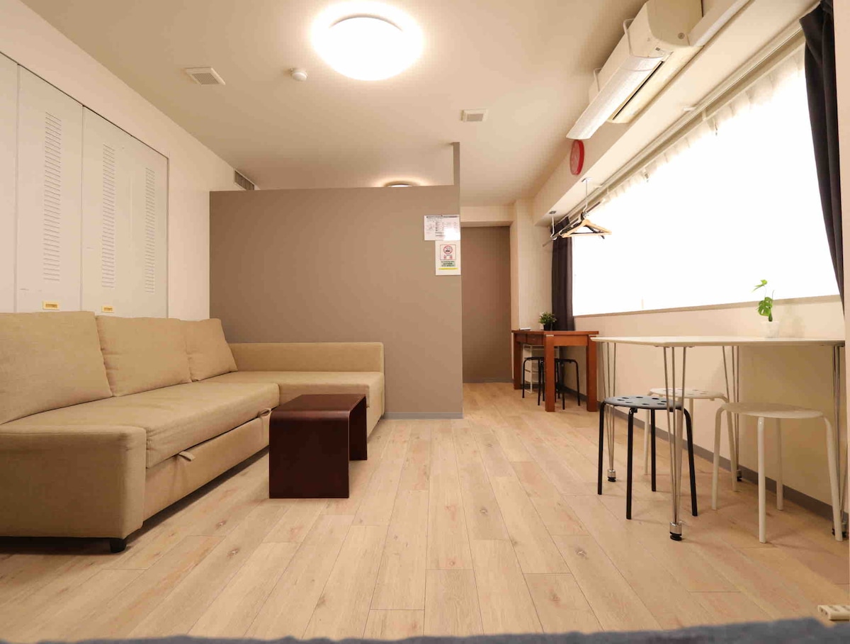 Pomladna košnja/2 spalnici/Čisto in urejeno/2 postaji do Osake Shinsaibashi in Namba/Najvišje nadstropje/5 minut hoje do postaje/7 oseb/Neposredna povezava z letališčem Kansai
