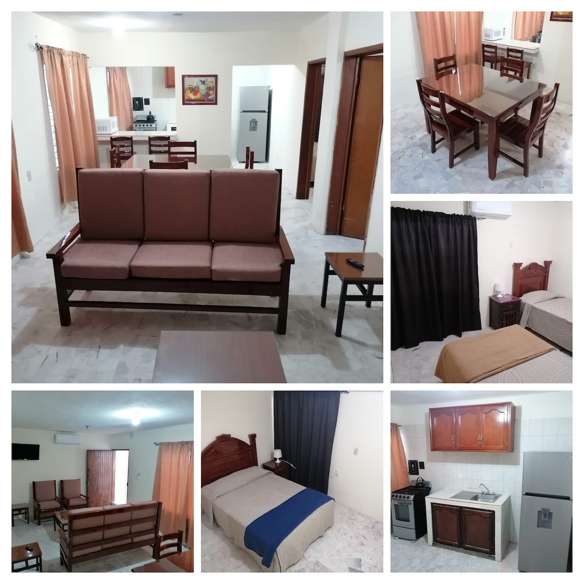Ste na obisku v Mazatlánu? Odlično! Imamo odlično bivališče. Apartma 2 ima vse, kar potrebujete: Lokacija v ✔️ prvem nadstropju 🔒 V varni stavbi, dostopni s kodami 🛏️ Zakonska postelja (Queen) za 2 osebi, največ 4 osebe, če najamete napihljivo vzmetnico (300 $ MXN) 🚽Kopalnica 🌬️ Minisplit (klimatska naprava) 🥄 Opremljena kuhinja 📺 Smart TV 🚀 Internet Poleg tega je v 3. nadstropju na voljo terasa z bazenom, žarom in barskim salonom. 5 minut od Zlate cone (cona Dorada) in v bližini restavracij, Soriane in Walmarta.