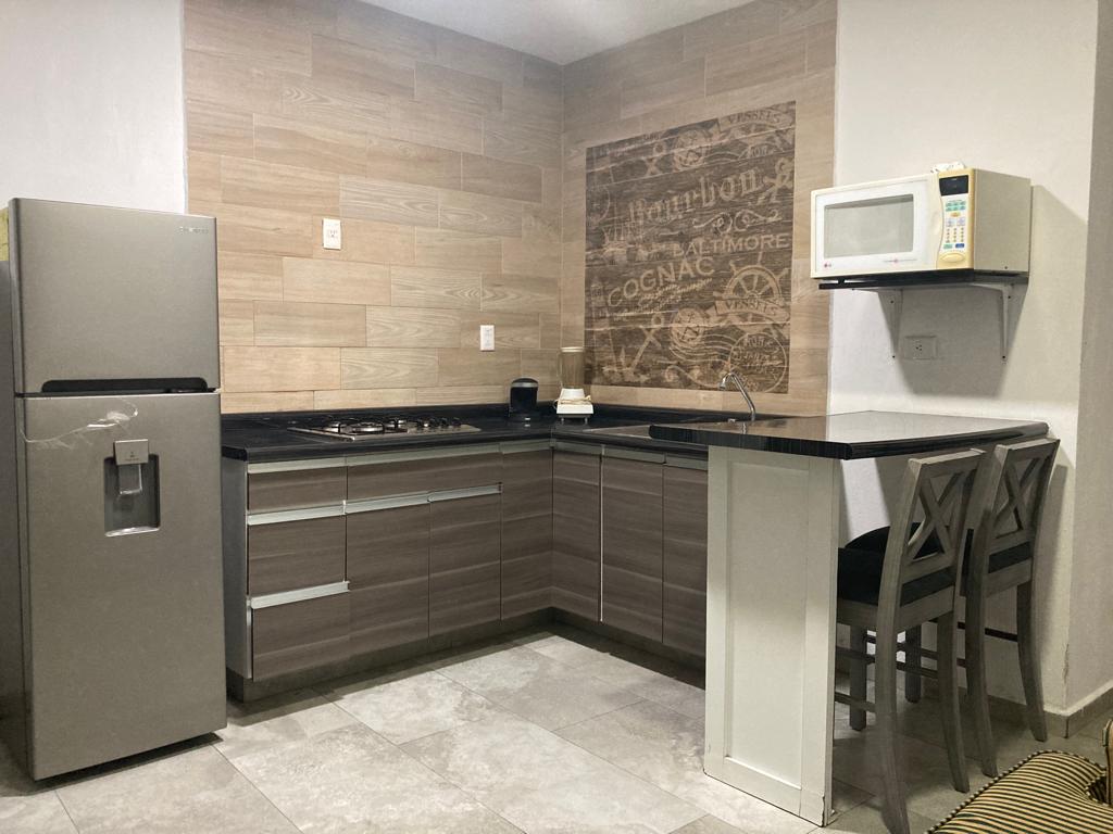 el lugar es un espacio creado para aquellos que desean tener un lugar cómodo, el espacio se encuentra equipado con recamara, sala, barra desayunador, cocina integral, aire acondicionado, chimenea eléctrica, parrilla eléctrica, acceso al gimnasio, Terraza, sala de juntas y lavandería.