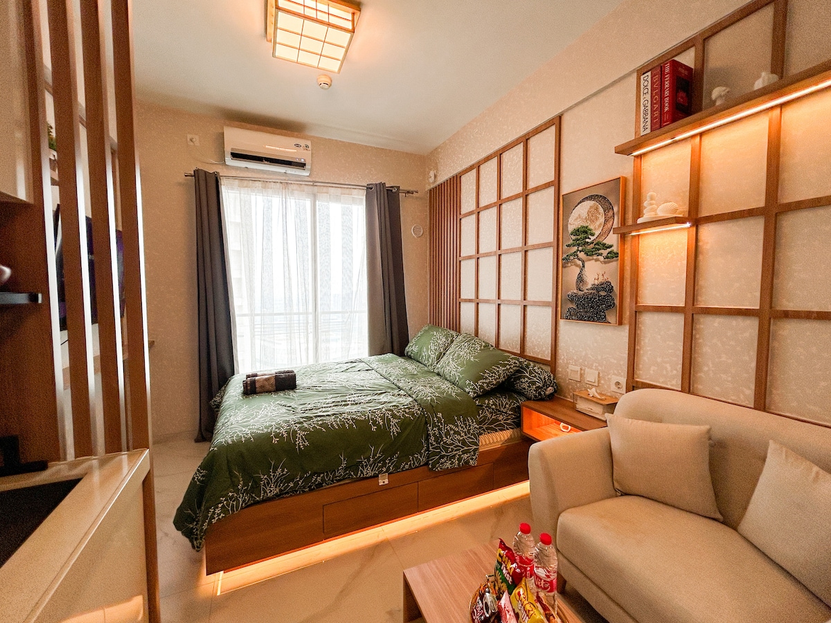 Uživajte v elegantnem doživetju v središču mesta v bližini zabavnih in nakupovalnih objektov ter rekreacijskih prizorišč Soba z opremo - 1 zakonska postelja (King) - Wi-Fi + Netflix - grelnik vode - Hladilnik - Aparat za vodo - klimatska naprava, - TV - toaletna mizica • sušilnik za lase - Likalnik - kuhinjski pripomočki in kuhinjski pripomočki Objekti v stavbi - Plavalni bazen -GY place - Kavarna -Mini Market * Indomaret * 24 ur Cirkel K - Parkirno mesto (plačljivo) - Pralnica Zabava in nakupovanje - Nakupovalno središče Aeon - ice bsd - The breeze bsd - Q Big Mall