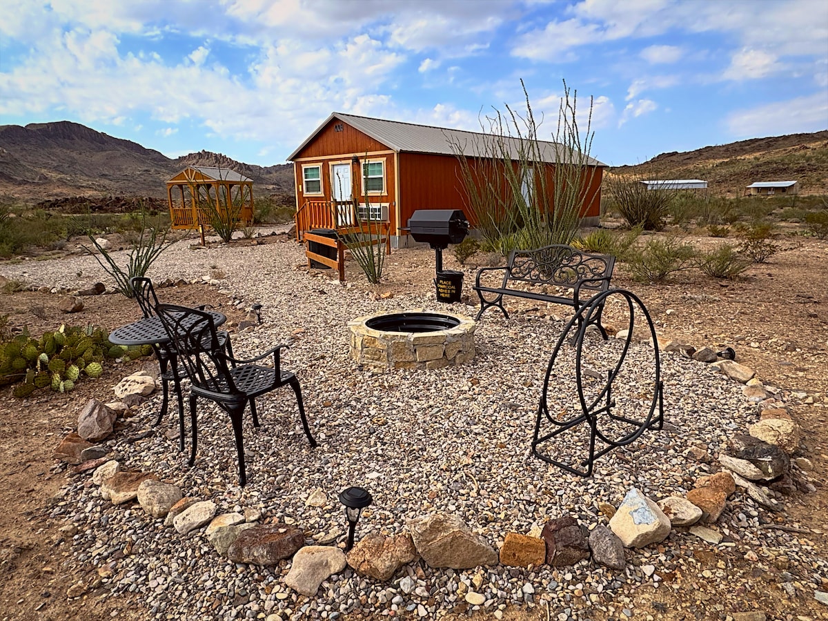 *Private location, near everything! *Locally owned/operated! *324 sq ft stylish cabin for two *COLD A/C, heat *Indoor&outdoor showers *Gas log fireplace *Queen bed & kitchenette, full bath, & clean compost toilet *Only 10 minutes to Big Bend *National park. 20 min to the state park *Stunning desert views of Big Bend National park *Sustainable, SOLAR powered *Sunrise mountain views from your pillow *The stars are waiting! *Come enjoy this desert gem, make memories & have an unforgettable stay!