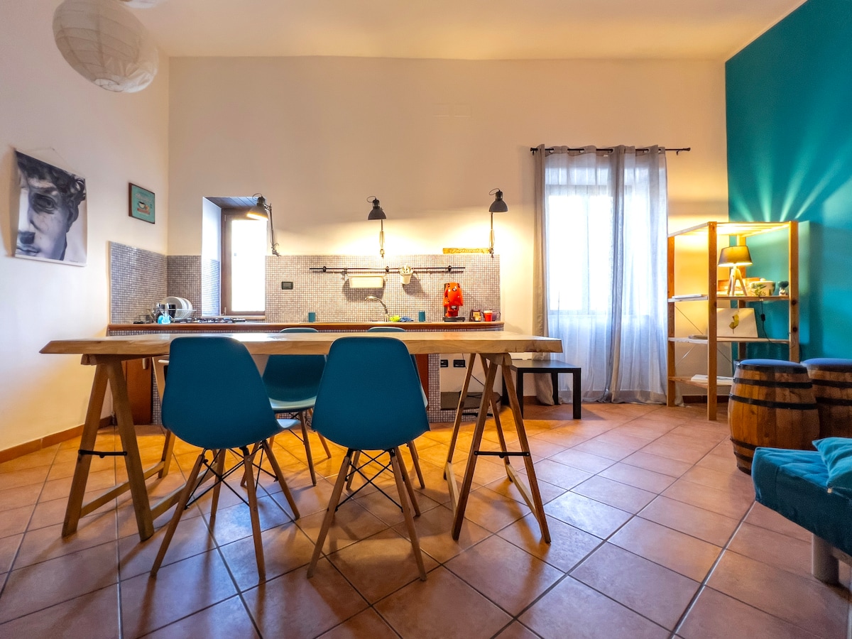 L'appartamento si trova in un Palazzo storico del 1900 di particolare pregio archittetonico per la presenza di marmi, ringhiere antiche originali e rivestimenti a pavimento con maioliche in stile liberty. I tetti alti, la struttura originaria in tufo, con ambienti spaziosi e aperture grandi e ariose rendono la casa fresca, ventilata e molto luminosa. La casa è arredata con gusto ed è efficiente sotto ogni profilo per quel che riguarda la cura, il comfort e la praticità.