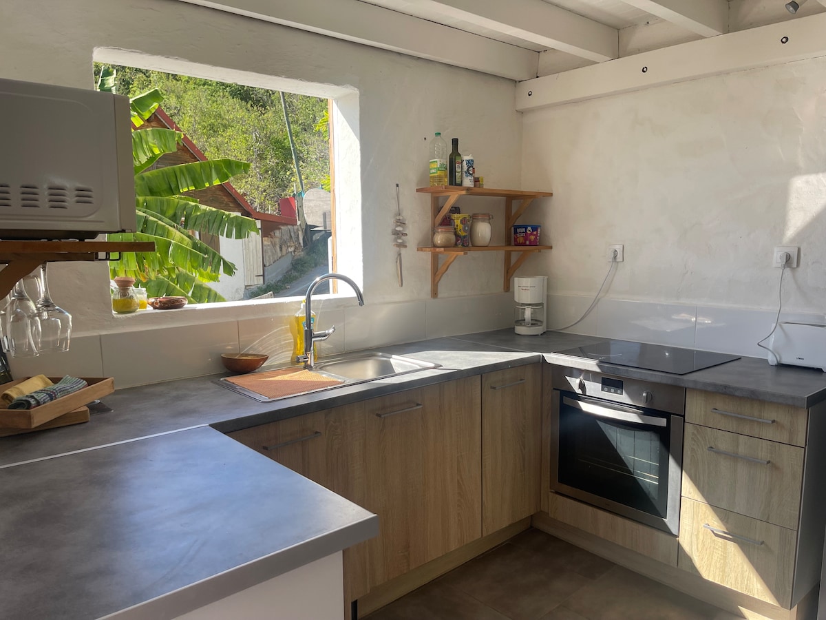 Uživajte v očarljivem okolju te romantične nastanitve v osrčju narave. Nahaja se proti zalivu Saintes, ki je slaven, eden najlepših na svetu. Ta kreolska škatla je ekološka, ker je ves les in avtonomen z vodo in elektriko. (deževnica in sončna elektrika). Zunanja prha sobne temperature v nastavitvi rastline vam nudi zagotovljeno spremembo pokrajine. Kuhinja, zasnovana in opremljena v kreolskem duhu, vam bo prinesla vso potrebno opremo za sanjsko bivanje.