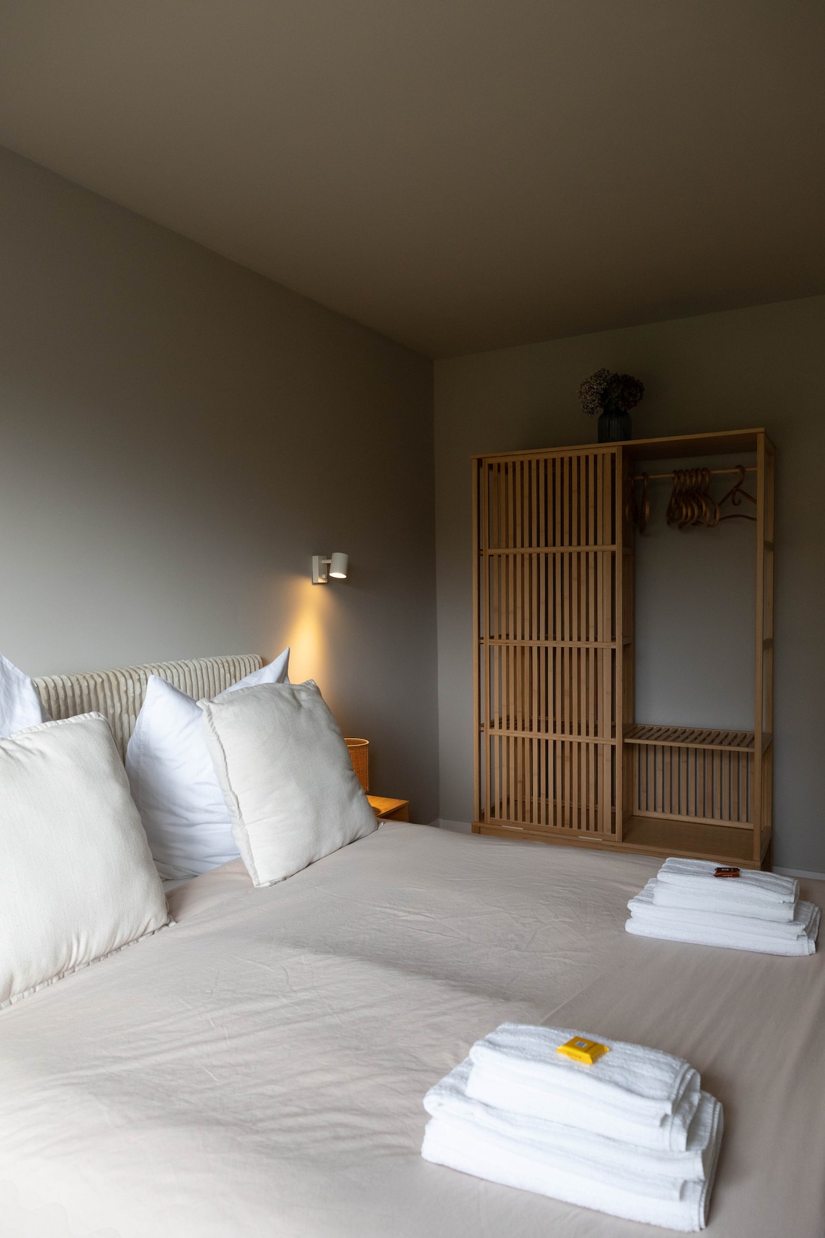 NEU: Direkt neben „Mono" steht ein weiteres Haus, „Nest im Wald“. Kann man auch besuchen. Oder beide… „Mono“ ist ein vor Jahrzehnten ausgebauter Trailer. Im Zuge einer Komplettsanierung bekam es 2020 rundum ein Timber-Frame-Skelett (neues Dach, neue Dämmung etc.) und damit eine erste Etage. Größe: 3,20 mal 13 Meter. Es heißt "Mono", da sein Außen, so wie auch jeder Raum innen, von hauptsächlich einer Farbe bestimmt wird.