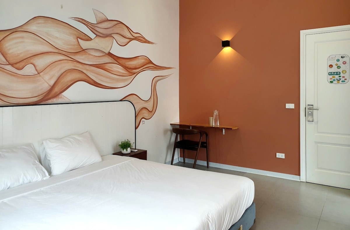 Odkrijte romantični oddih v očarljivem novem bungalovu s pogledom na jezero Dong Do, Soc Son, Hanoi! Doživite nepozaben oddih v tem popolnoma novem bungalovu z udobnim predelanim stanovanjem in osupljivim razgledom na jezero Dong Do. Idealno za pare in družine Spite kot kraljeva družina na prostorni 2,2-metrski okrogli postelji, ki izžareva prefinjenost. Uživajte v zasebnosti s popolnoma opremljeno opremo, vključno s klimatsko napravo, toplo vodo in kopalnico v spalnici. Opazujte sončni zahod, kako jezero barva vijolično z vašega zasebnega balkona.