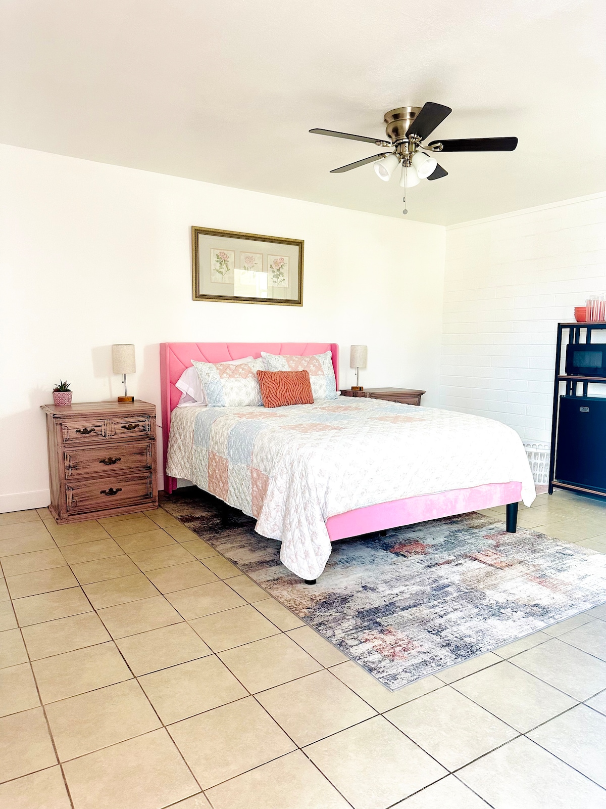 Welcome to a comfortable nights rest. This private hotel-style room features a plush queen bed, smart TV, mini-fridge, microwave and an en-suite bathroom. Ideal for solo travelers or couples. You’ll enjoy Wi-Fi, self check-in, and complimentary coffee/tea. Located just 8-15 minutes away from Thatcher and Safford. Everything you need is right at your doorstep even a restaurant. Whether you are here to explore or unwind, this cozy room is a fantastic base for you.