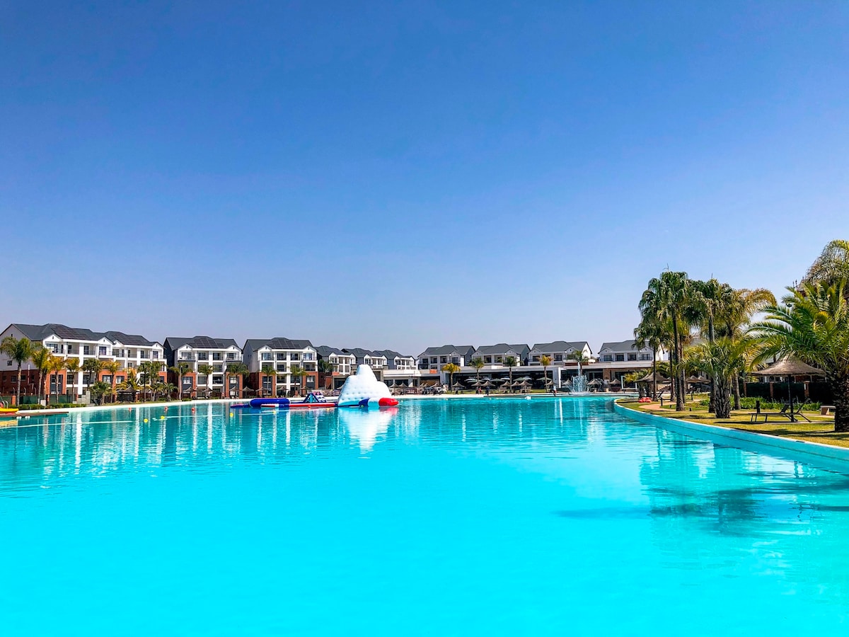 Come and enjoy a relaxing and enjoyable getaway. This self catering, 2 bedroom sleeps maximum of 4 guests per booking. Fully equipped kitchen with basic cooking utensils and coffee station. Separate tub and shower ,DSTV ,nice view on the Balcony. All booking includes entry into the Lagoon and facilities such as gym,spa,restaurant cinema,games room. Please note no day visits allowed