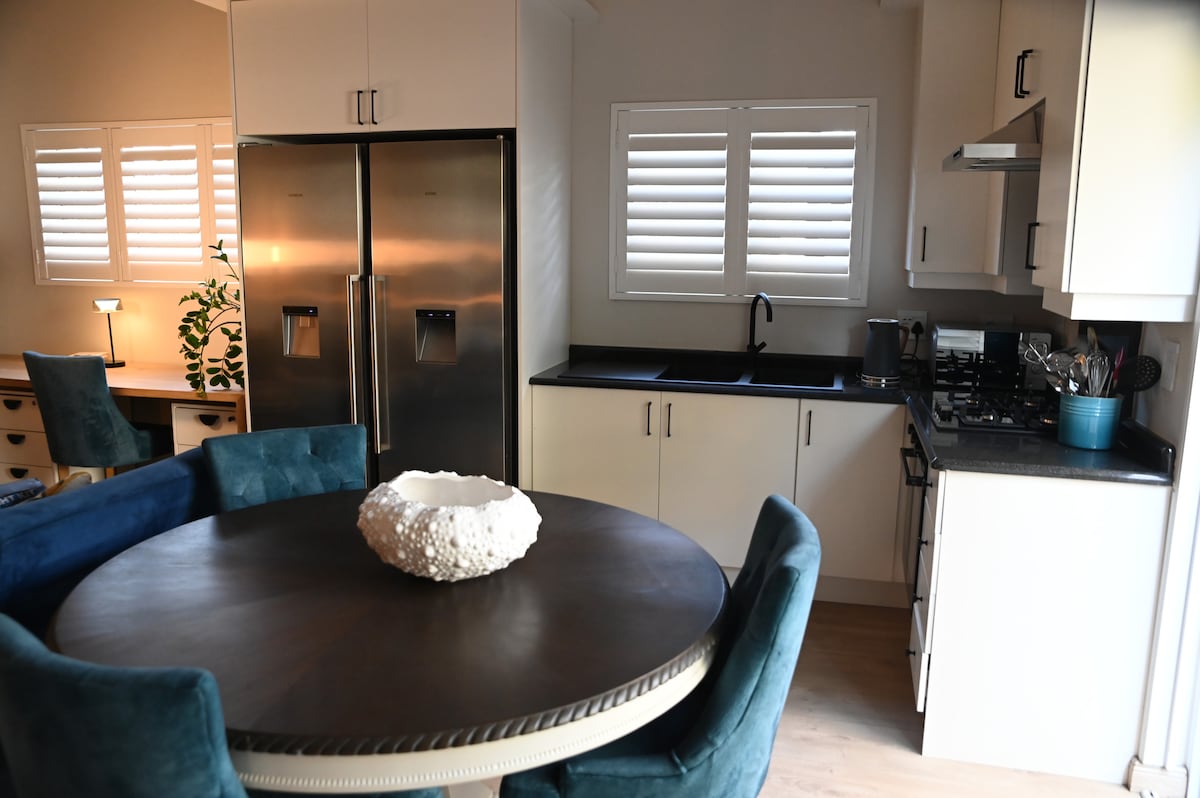 This light-filled apartment is fully private with its own entrance, separate from the main house—perfect for peace and quiet. Inside, you’ll find a cozy bedroom with an en-suite bathroom, plus a spacious living area with a dining space and a kitchenette for your convenience. The apartment is powered by solar backup electricity and a solar geyser, so you can enjoy a comfortable stay without the hassle of load shedding. We share our home with two dogs and a cat—friendly family pets who love people