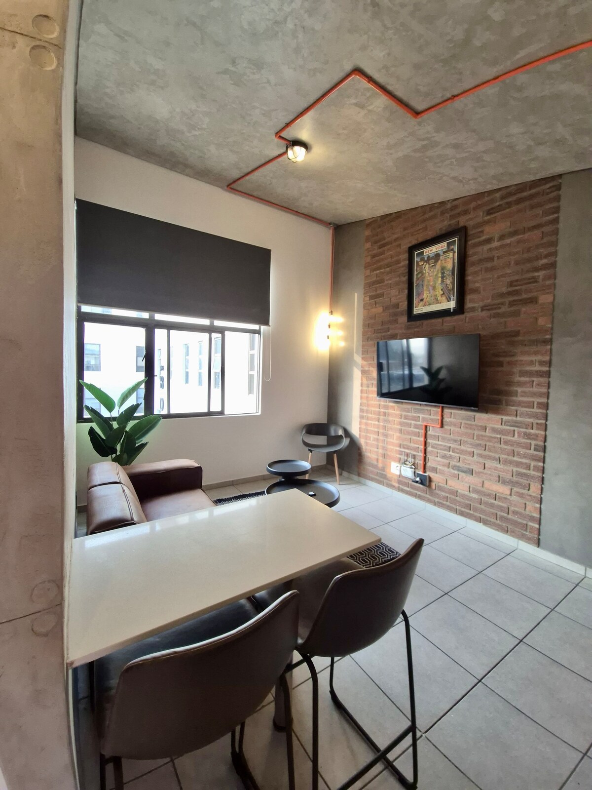 Drzno, edinstveno industrijsko stanovanje z izpostavljeno opeko, skladiščnimi cevmi in elegantno razsvetljavo. Sprostite se na razkošnem usnjenem kavču in uživajte v 55-palčnem pametnem televizorju, kavnem aparatu Nespresso, kompletu nožev Damashiro in popolnoma opremljeni kuhinji. Vrhunska vzmetnica Sealy za največje udobje. Stopnice od nakupovalnega središča Rosebank Mall, restavracije Motherland Coffee, marmorne restavracije in restavracije Gautrain z non stop varnostjo, varno parkiranje, delovni prostori in sejno sobo.