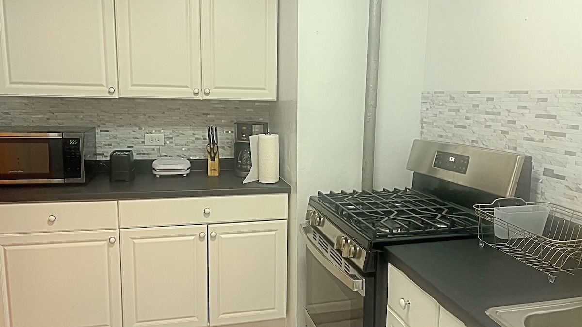 Svetlo in prostorno enosobno stanovanje z zasebnim dostopom, opremljeno s popolnoma opremljeno kuhinjo, veliko dnevno sobo, kopalnico z WC-jem in zasebnim dvoriščem – le nekaj korakov od Central Parka in podzemne železnice. Enota v pritličju z zasebnim vhodom, hitrim Wi-Fi-jem, elegantno opremo in udobjem, primernim za hišne ljubljenčke. Kot nalašč za pare, samostojne popotnike, skupine in družine.