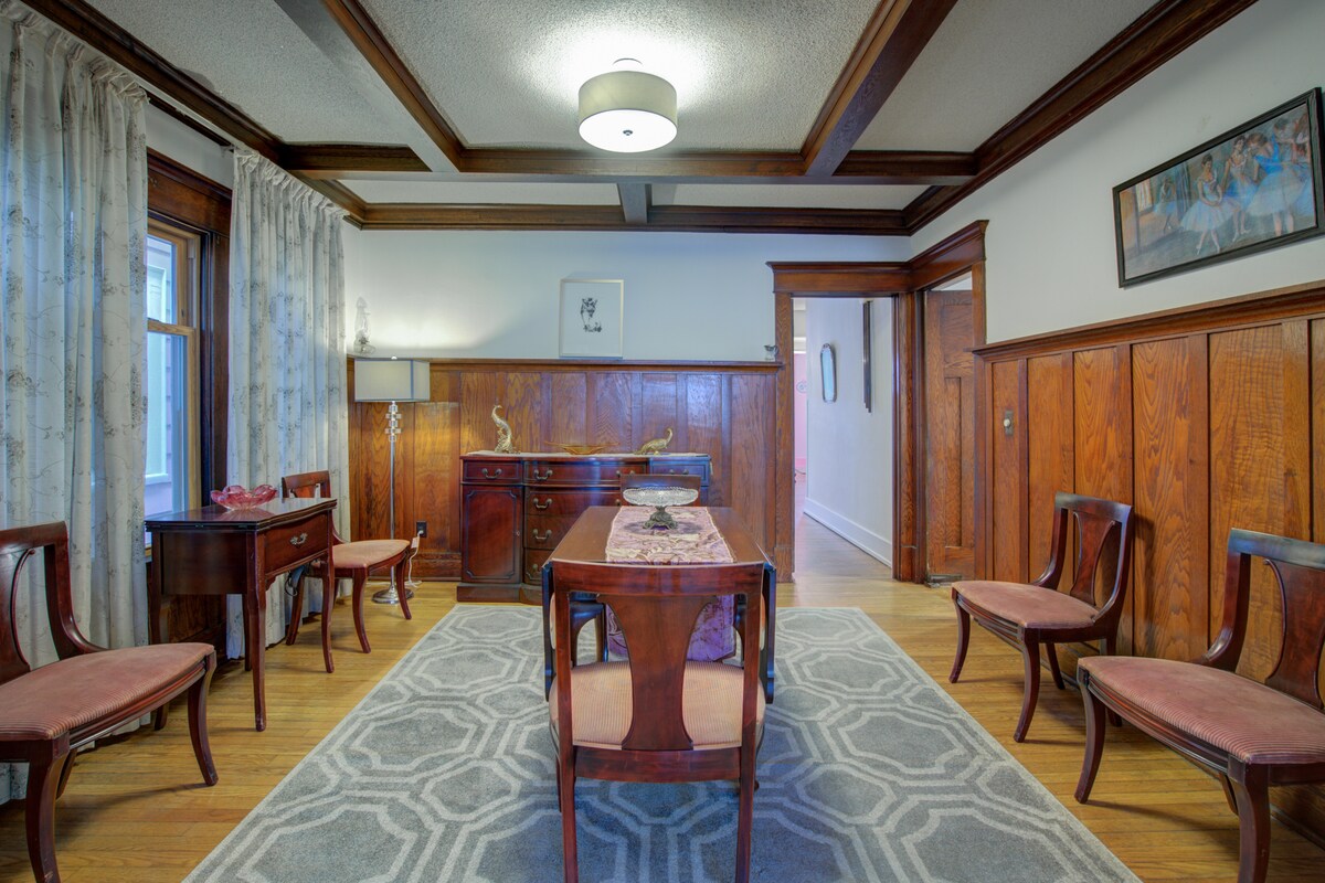 Uživajte v našem posodobljenem prenočišču (zgrajenem iz leta 1906-1912) v zgodovinski soseski Parkside F. L. Olmsted, čudovito urejeni oazi velikih domov v osrčju Buffala. Obiščite Martinovo hišo Franka Lloyda Wrighta (tik ob ulici!), Delaware Park in Bflo Zoological Gardens ali shop&dine vse v 2 blok hoje. Zasebni vhodni apartma ima 2 spalnici, prostor za sedenje/bar z zajtrkom in razkošno kopalnico. Lokacija je primerna za vse znamenitosti območja in polna arhitekturnih zakladov!