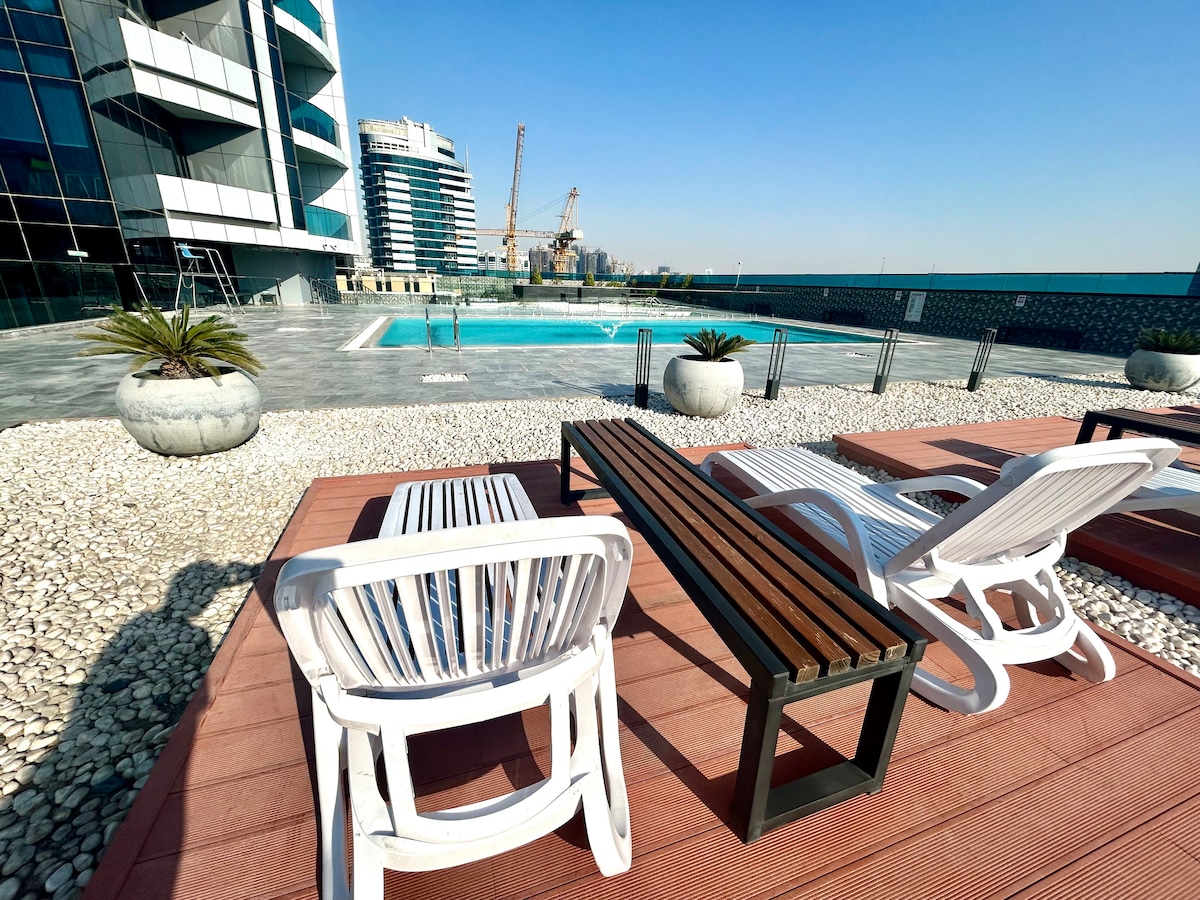 Naše čudovito stanovanje je idealen kraj za pare, prijatelje in poslovna potovanja. To je očarljivo in zasebno zatočišče z vsega sveta. Udobno, popolnoma opremljeno stanovanje z vso opremo, ki jo potrebujete in želite, dopolnjeno z ogromnim bazenom, 24-urnim varovanjem, telovadnico in savno ter supermarketom spodaj. Uživajte v razkošni okolici našega prenočišča, kjer cenimo vašo zasebnost in poskrbimo, da boste imeli popolno bivanje v Dubaju.